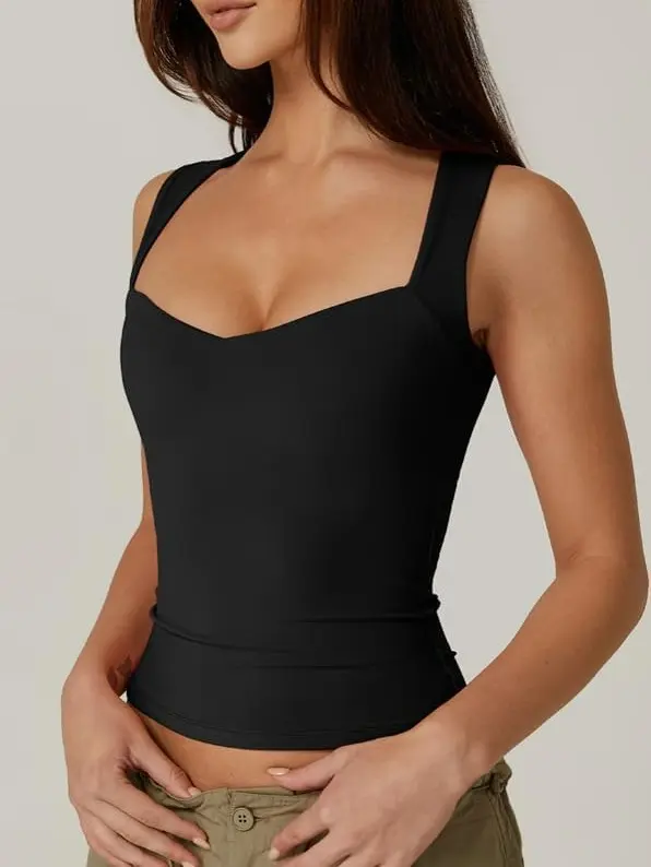 ·QINSEN CLOUND MATERIAL: Our sweetheart neck sleeveless T shirt designed in our premium polyamide high-stretch breathable fabric with dual layered makes it compressive fit and create you a flattering silhouette.Just like a second skin wraps itself around your body.