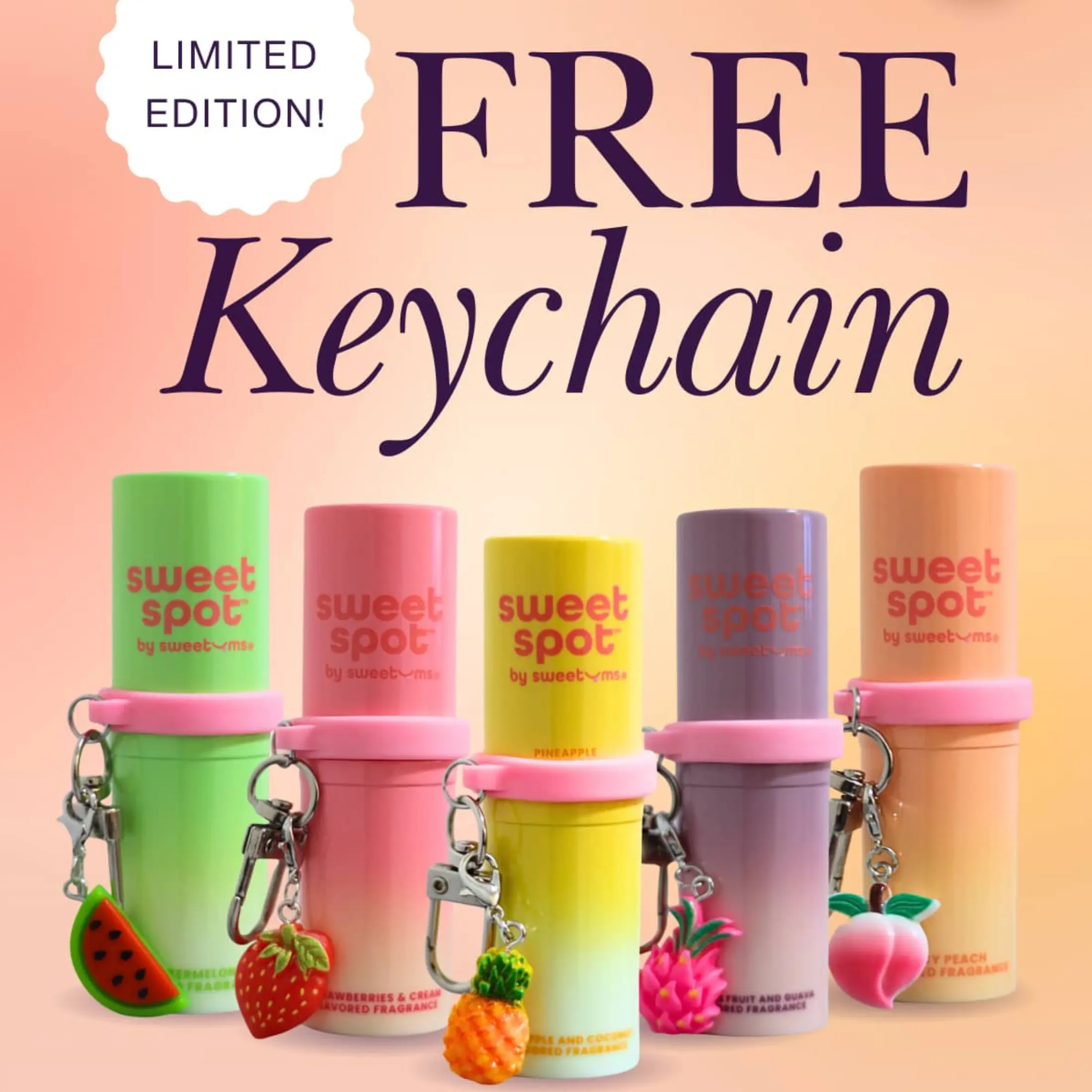 ·FREE key chain & charm — the charm matches your flavored fragrance and the key chain clips on and holds your fragrance for easy on-the-go application. Plus, it looks adorable and adds some flair to any purse or wallet.