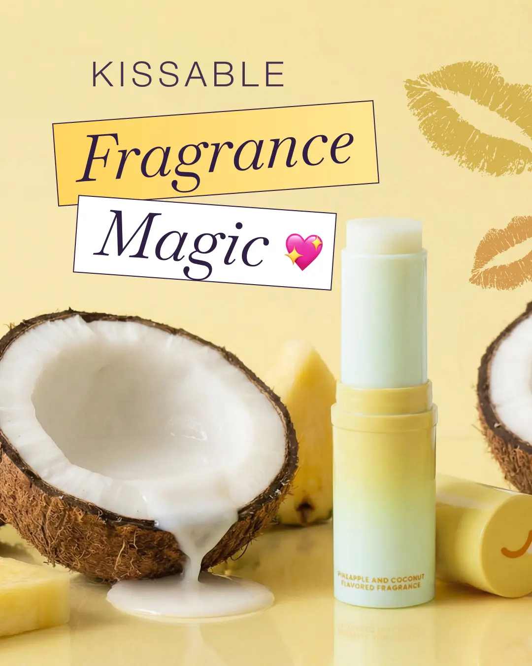·Tropical pineapple + creamy coconut scent and flavored fragrance: This Fragrance and Key Chain combo includes our Pineapple Coconut Flavored Solid Fragrance with a band that wraps around the fragrance and attaches to your purse, backpack, keys, etc. so you can smell and taste good anytime you want.