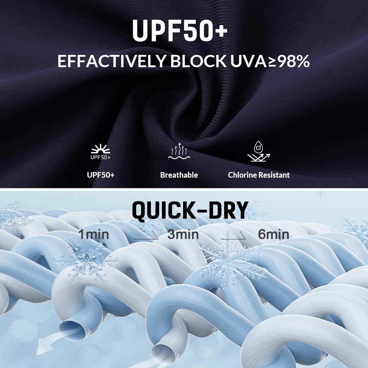 ·Fabric type: 75.7% nylon,24.3% spandex.Quick dry,stretchy,UPF 50+ sun protection and chlorine resistant