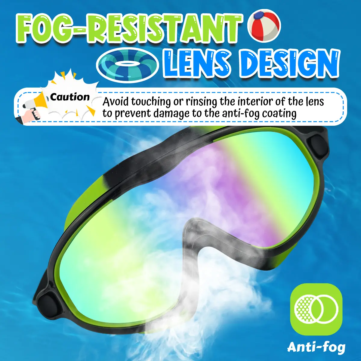 The latest anti-fog treatment provides clear underwater vision, while high-quality silicone cushions ensure a leak-free experience for uninterrupted swimming fun.