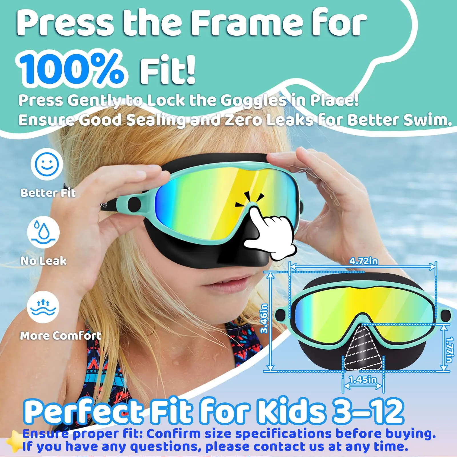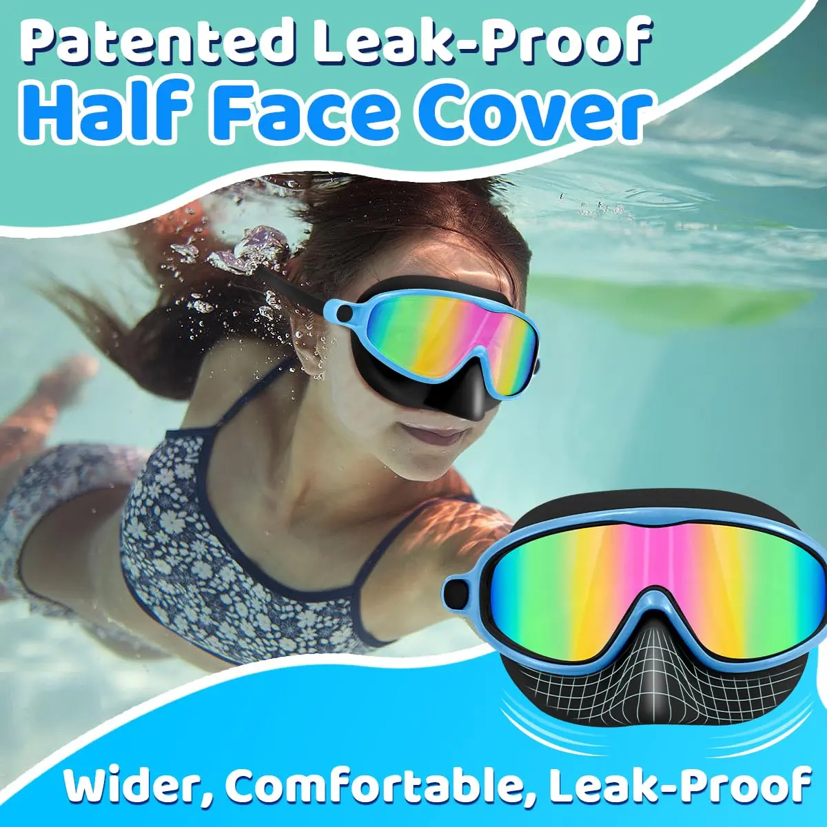 ·Wide View: Enjoy a panoramic view underwater with quality anti-fog lenses that protect your child's eyes from pool water, sunshine, and harmful bright lights.