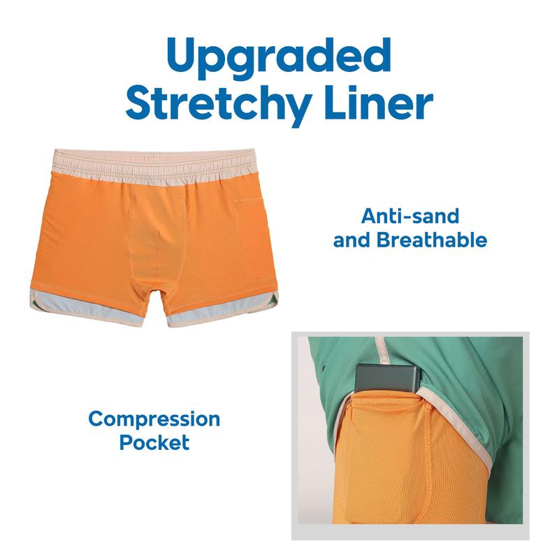 These swim shorts are crafted for those who are always on the move. The 4-way stretch fabric allows for ease of movement, ensuring you stay comfortable during physical activities. The drawcord waistband offers a secure and comfortable fit. With 2 side pockets and 1 back pocket, you can carry small essentials like keys or a phone conveniently. Stay cool and dry with the soft mesh liner.
