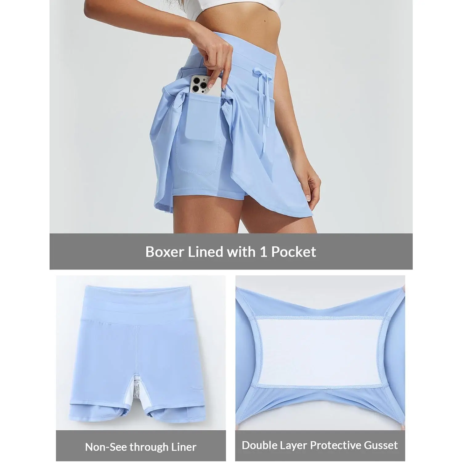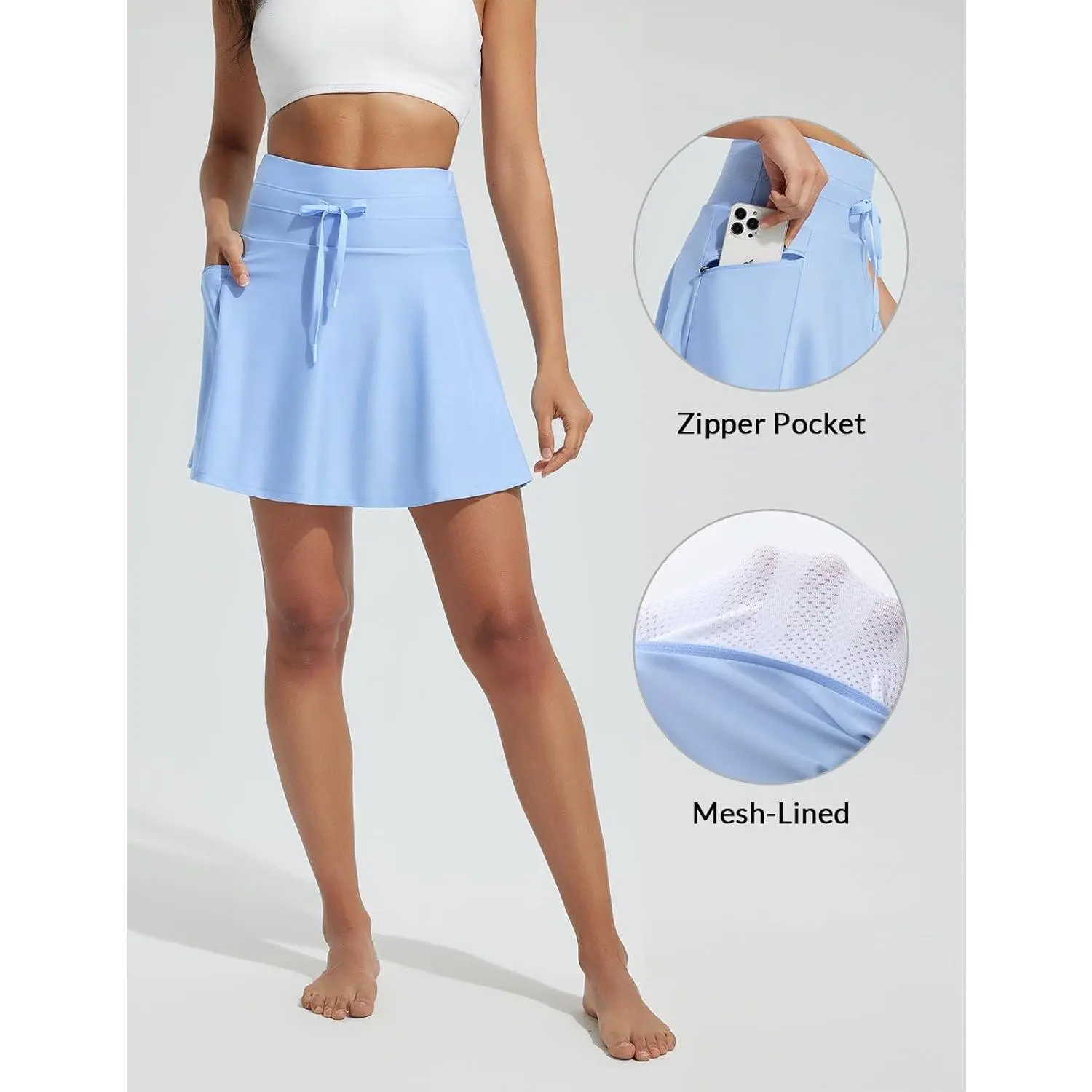 ·Zipper Pocket+1 Inner Pocket: The swim skort features one side zipper pocket and one pocket on the right of the boyshort to store your phone,card,and sea pass card while enjoying your time at the beach