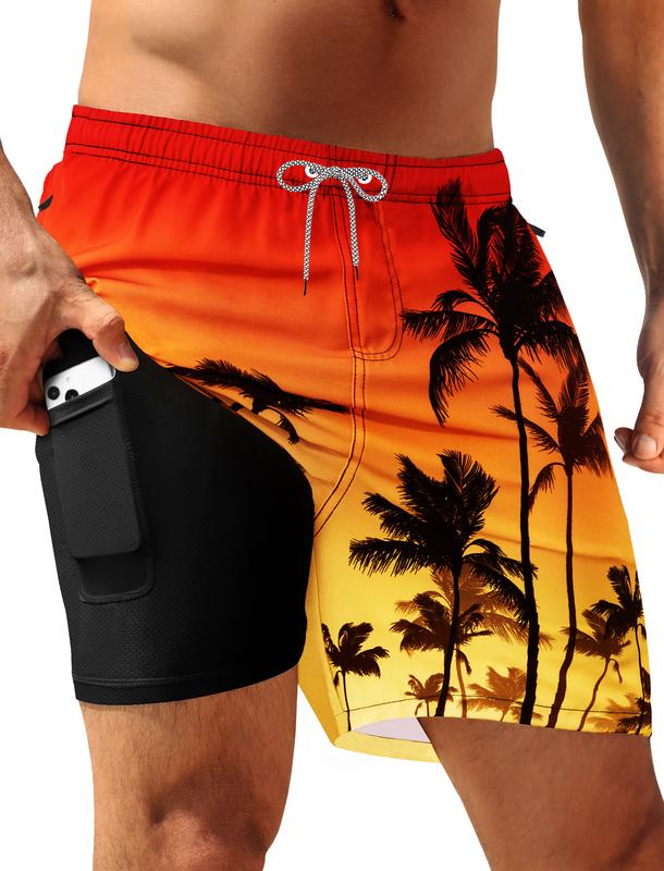 APTRO Mens Swim Trunks are 5-inch board shorts made from 100% polyester. They feature a compression liner and zipper pockets. The elastic closure ensures a secure fit. Perfect for all-day comfort, these swim trunks are imported and quick-dry. ๐