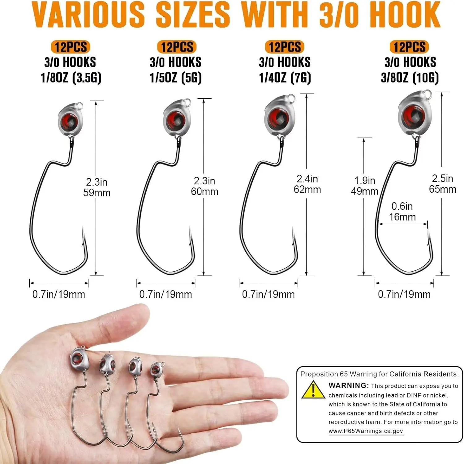 Β·Packaging: Shows the 12PCS Ned Rig Jig Heads and Texas Rig Hooks.