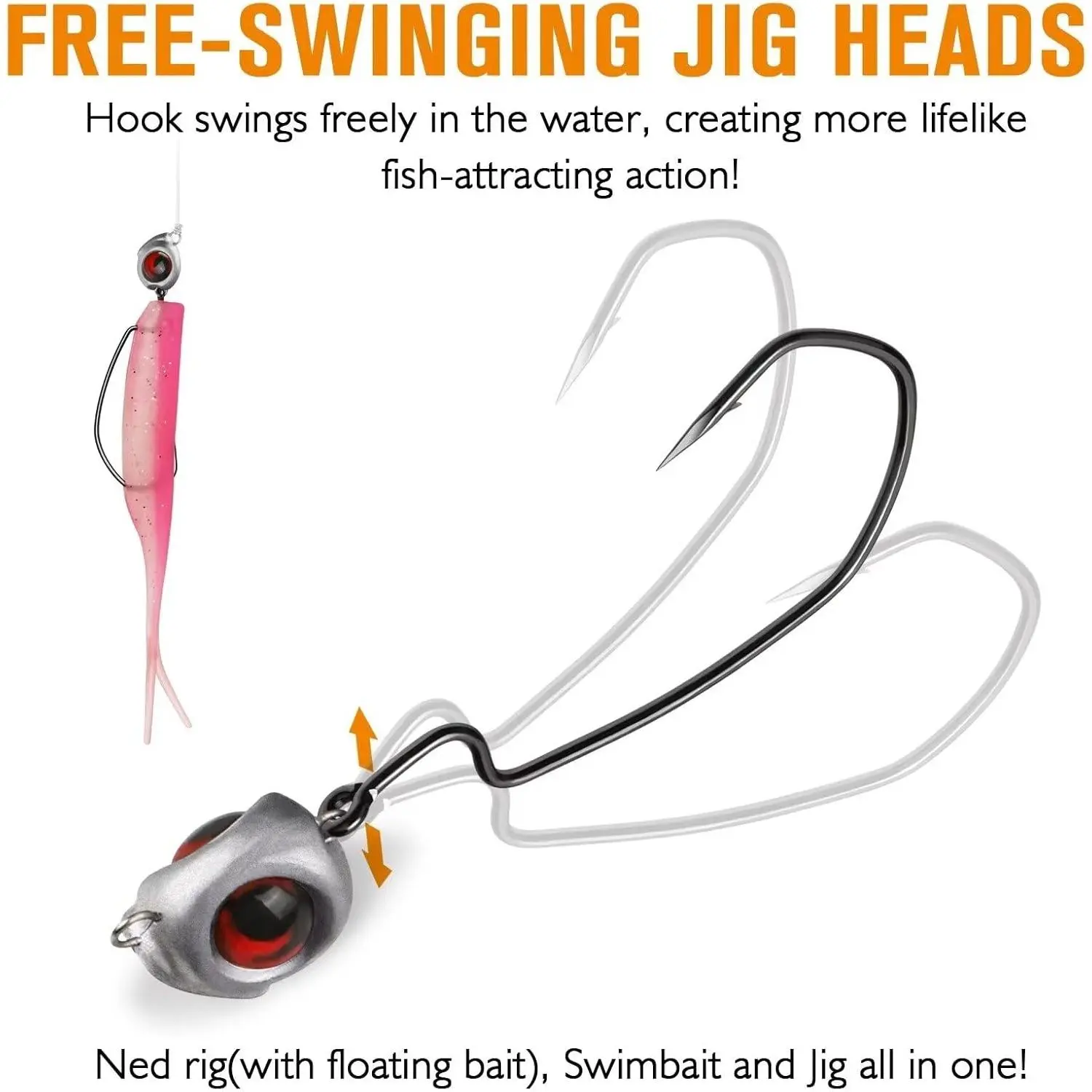 These Swimbait Jig Heads are perfect for bass fishing with their swivel action, pro obtuse-angle bend, and durable EWG hook. Follow the steps to set up a ned rig for optimal fishing results.