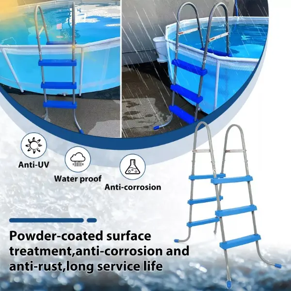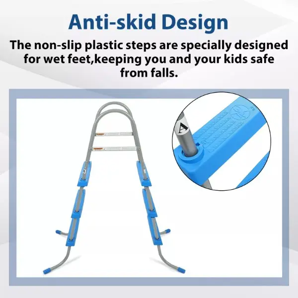 3 Steps design and blue high-impact plastic steps, embossed slip-resistant pattern, allow for a safer decent in and out the pool.