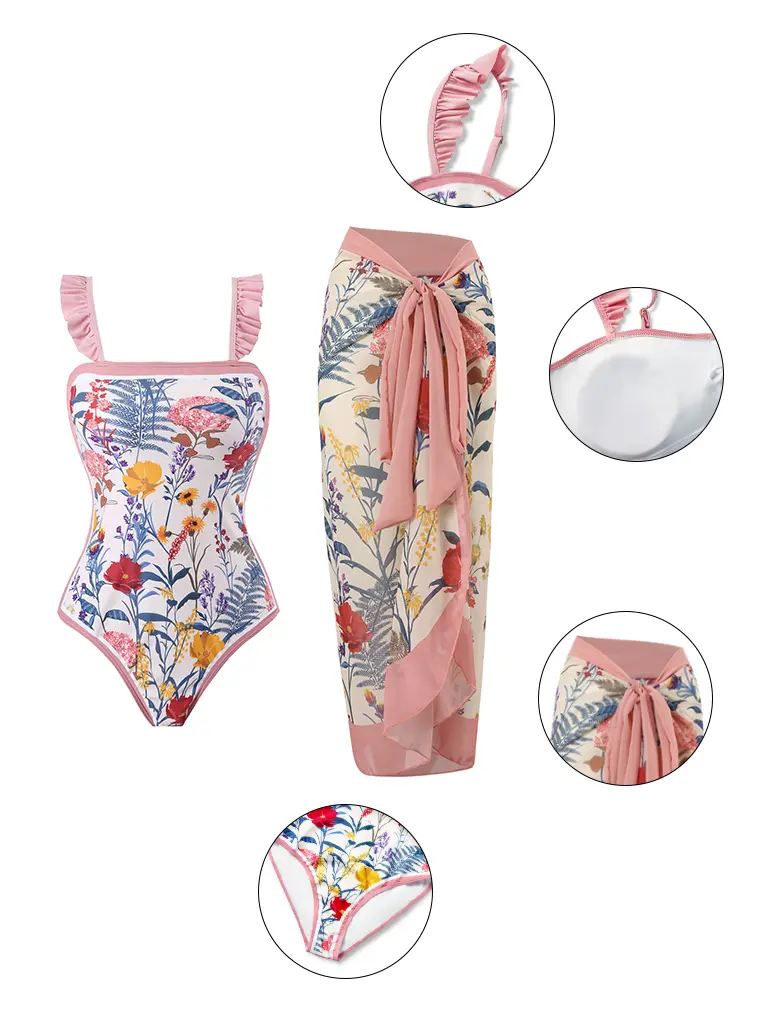 Elevate your beach style with this fashionable two-piece swimsuit. The square neckline offers modest coverage, enhancing your figure with a flattering, sexy look. Perfect for showing off your curves, this bikini is a must-have for summer. Pair it with a matching beach skirt for a complete ensemble.