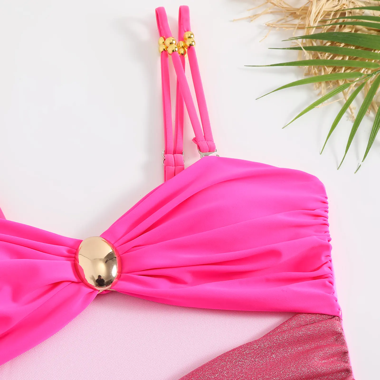 ✨ Elegant Metal Design: This swimsuit features a striking metal ball design in the chest and waist, adding a touch of sophistication. The hollow cut-out enhances skin exposure, offering a hint of allure. The adjustable straps ensure a perfect fit, while the small metal balls on the straps align with the chest for support.