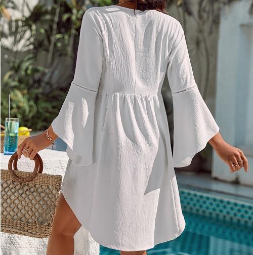 ·Unique Design: Features the deep v-neck and 3/4 bell sleeve with mesh panel patchwork design, you can easily create a stylish and cute look. The loose-fitting, flowing cover up features bell sleeves and a high low irregular hem making this dress stand out, and show out your feminine and elegance.