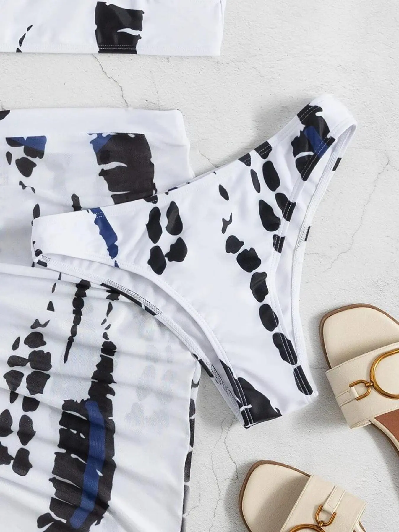 【Versatile Style with Modesty】: The 3pcs colorblock print bikini set features a cutting-out tie-back design and a high-cut panty that balances a touch of allure with a sense of modesty, perfect for those who want to showcase their style without sacrificing sophistication.