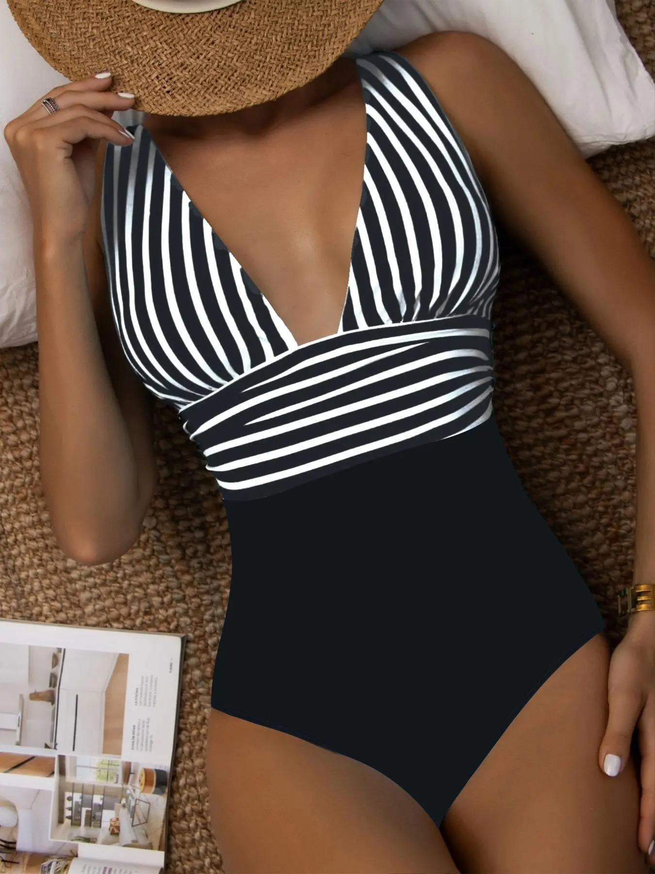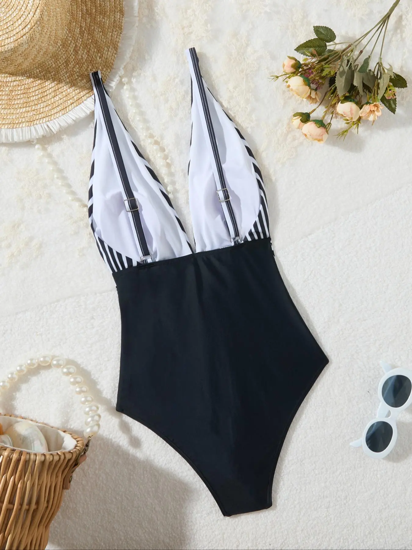 You can't go wrong with this one. Love this at it has adjustable straps thick waist bamd which flatteiring and sexy neck line.