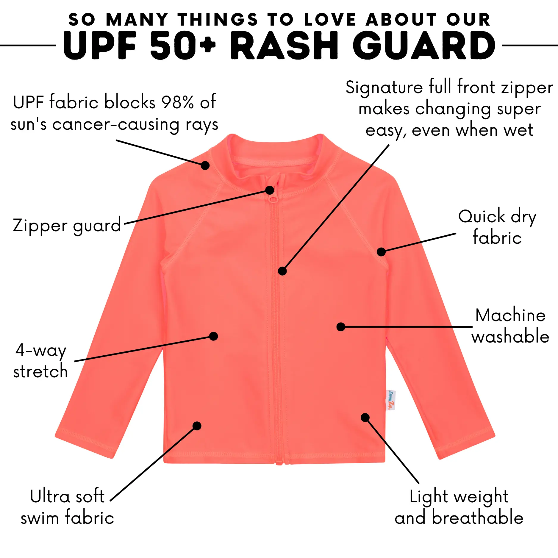 ·Made of the highest-rated, most comfortable UPF 50+ sun protective fabric