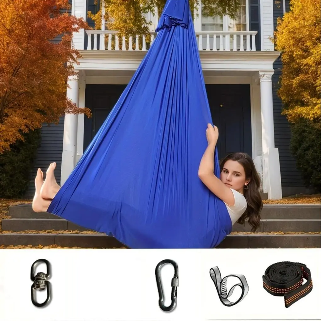 Swing with 360 Degree Rotating Ring, Portable Swing Hammock, Size 59x110 Inches, Elastic, Includes Hardware, Ideal for Yoga Camping Picnic