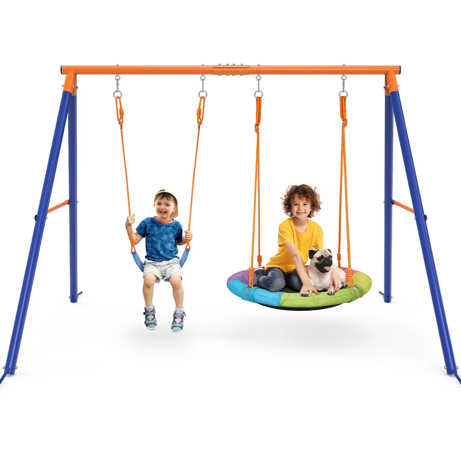 ·STURDY STAND - A-frame design provides a stable base and safe conditions. Constructed of a tubular steel frame with powder-coated paint that gives the swing lasting protection from excellent rust, corrosion, and wear.