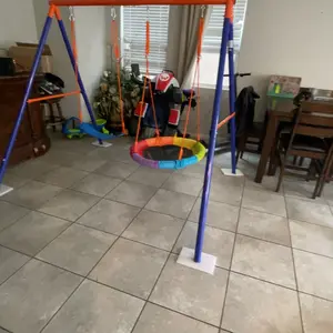 Piece of the swing was bent and couldn’t be put together. It was a gift for my grandchild who didn’t get to swing on it. And now I have to mail this big metal swing back to china to get refund.