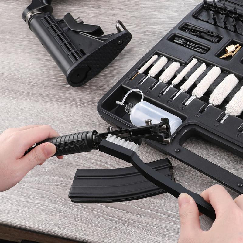 ·Cleaning Kits for All Guns: Universal gun cleaning kit for all types of firearms. The cleaning kit can clean all calibers of guns such as pistols, air guns, rifles, shotguns, hunting guns, and black powder guns. This case contains all the cleaning tasks you need to do for all gun enthusiasts