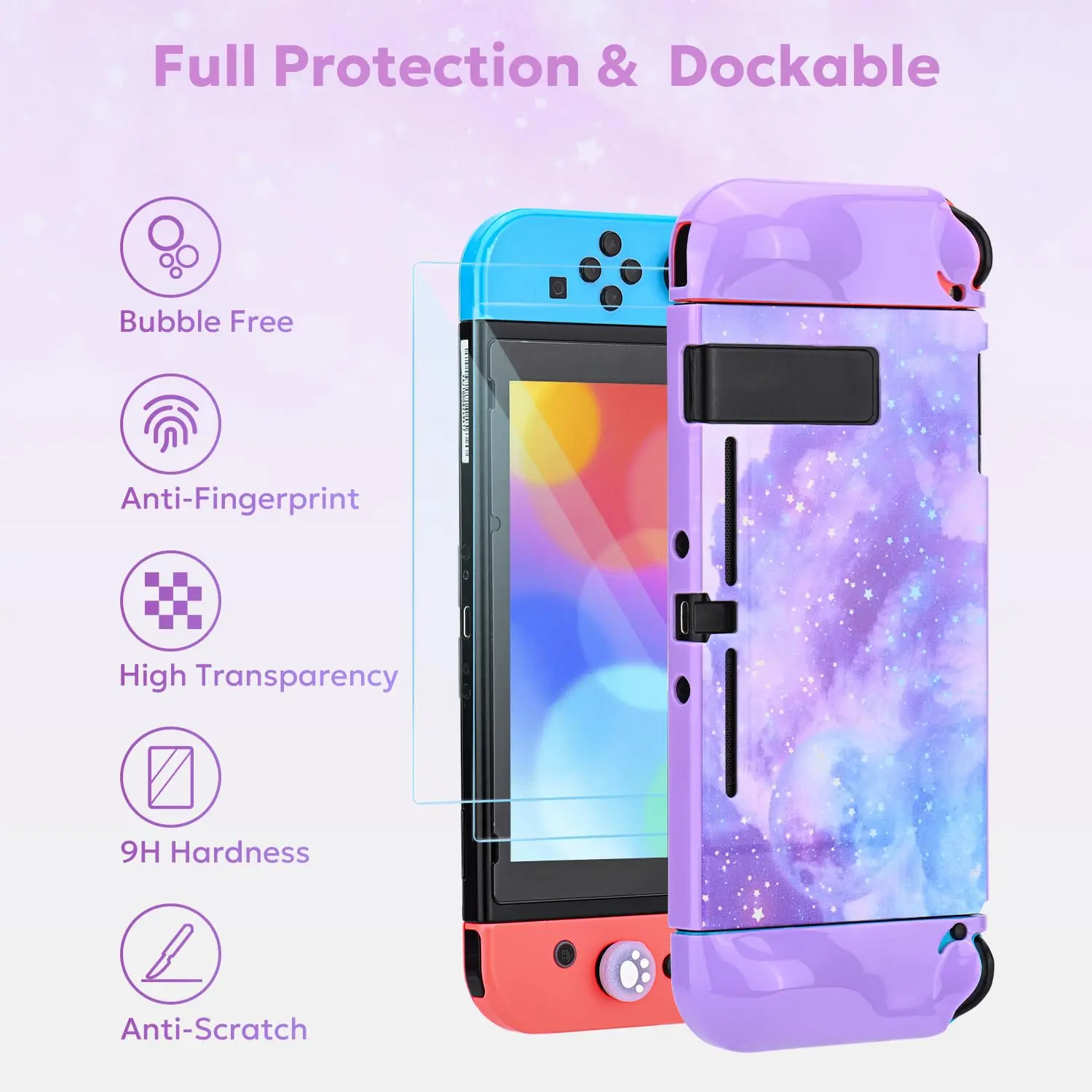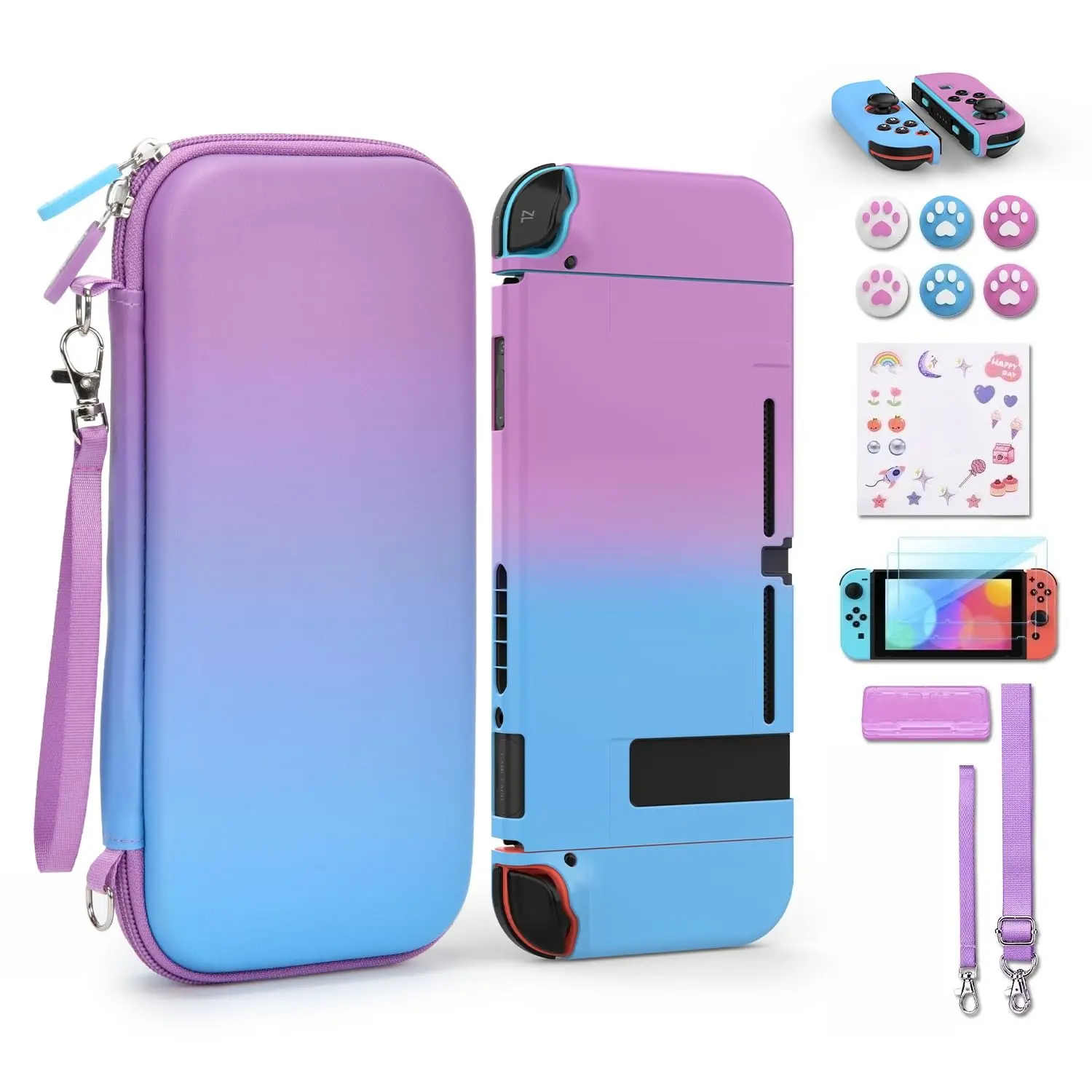 15 in 1 NS Switch Case Bundle: This Switch accessories kit includes: Switch carrying case x 1, Switch J-con cover x 2, Dockable switch protective case x 1, Switch game case x 1, Switch screen protector x 2, Switch thumb caps x 6, Cute Pendant x 1, Sticker x 1. Meet all your basic needs for switch accessories