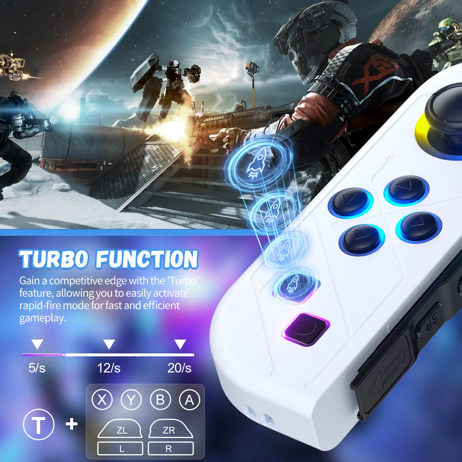 【Other Functions】-Support any key to wake up (except L3, R3), automatic pairing and connection with the host, USB upgrade, turbo function.