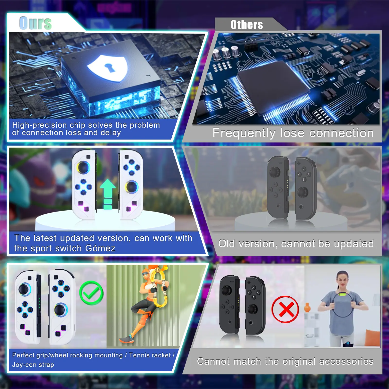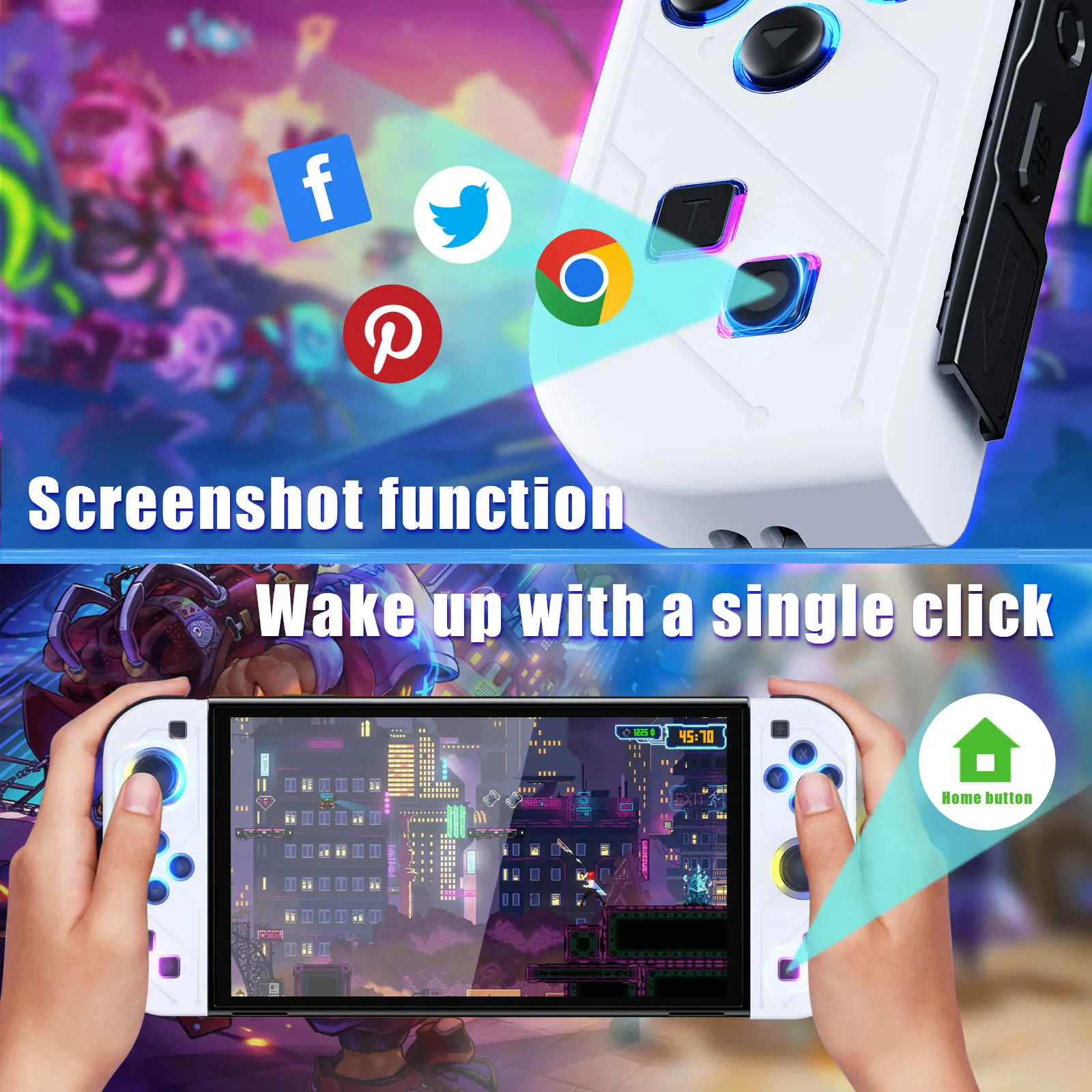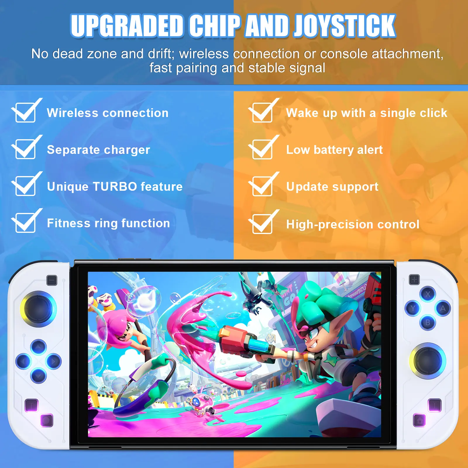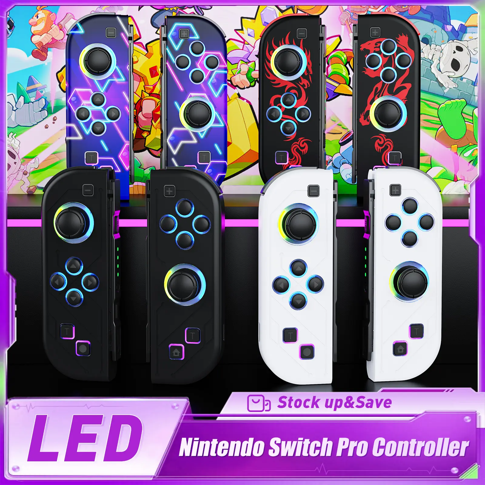 This Switch controller has newly upgraded RGB LED lighting functions and exquisite appearance patterns, making your Nintendo Switch full of personality.Perfectly compatible with Nintendo Switch/Switch Lite/Switch OLED.