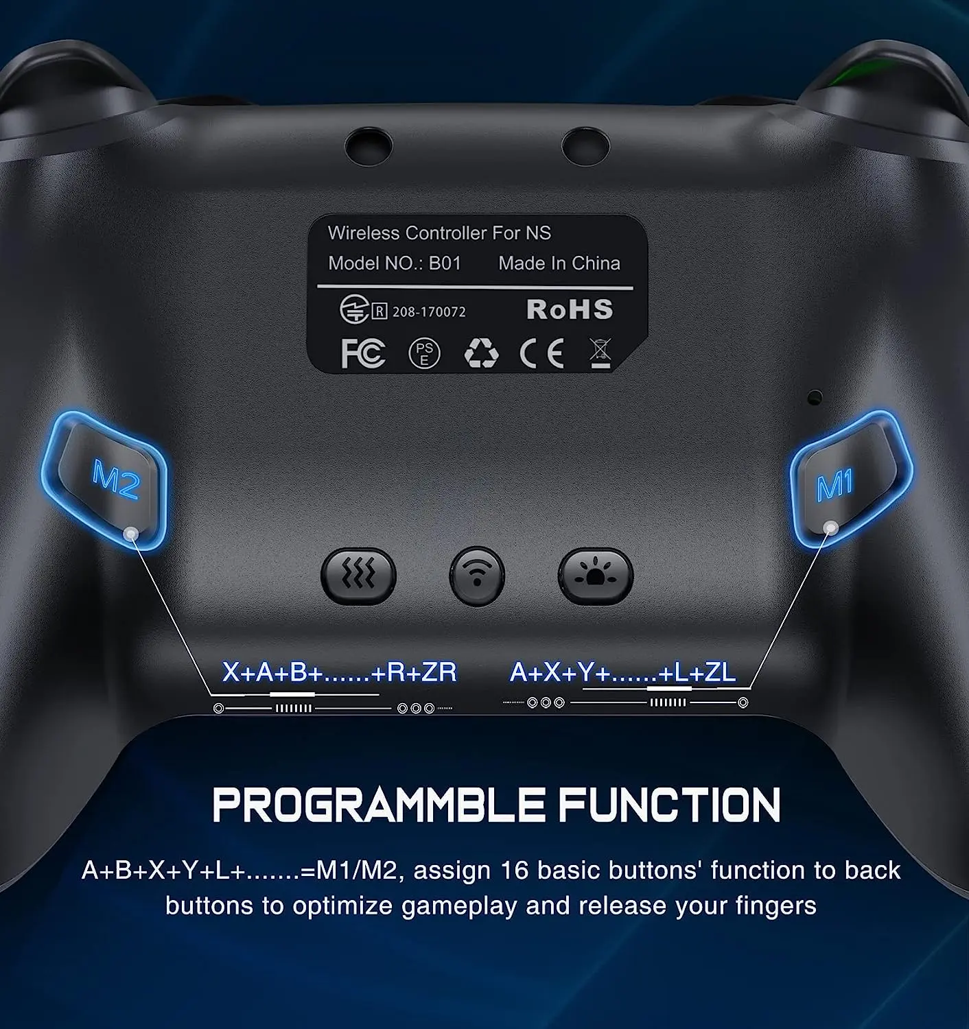 ·【PROGRAMMABLE FUNCTION for SWITCH CONTROLLER】Switch wireless controller with 2 back programming buttons, there are two modes, which are single programming or multi-programming. M1/M2= A+B+Y+L+ZL+R+ZR+D-pad.