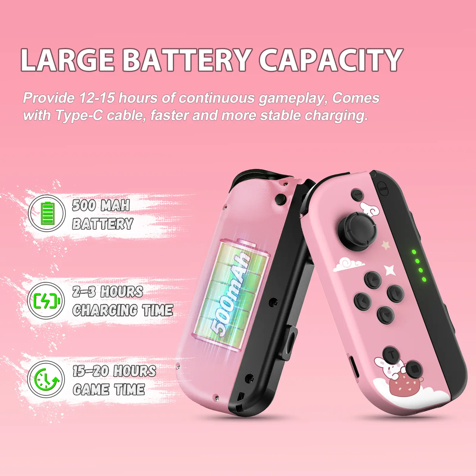 ·【Longer Game Time】- Built-in 650 mah lithium battery, charged via USB cable, can be fully charged in 2 hours, providing 12-15 hours of use time.