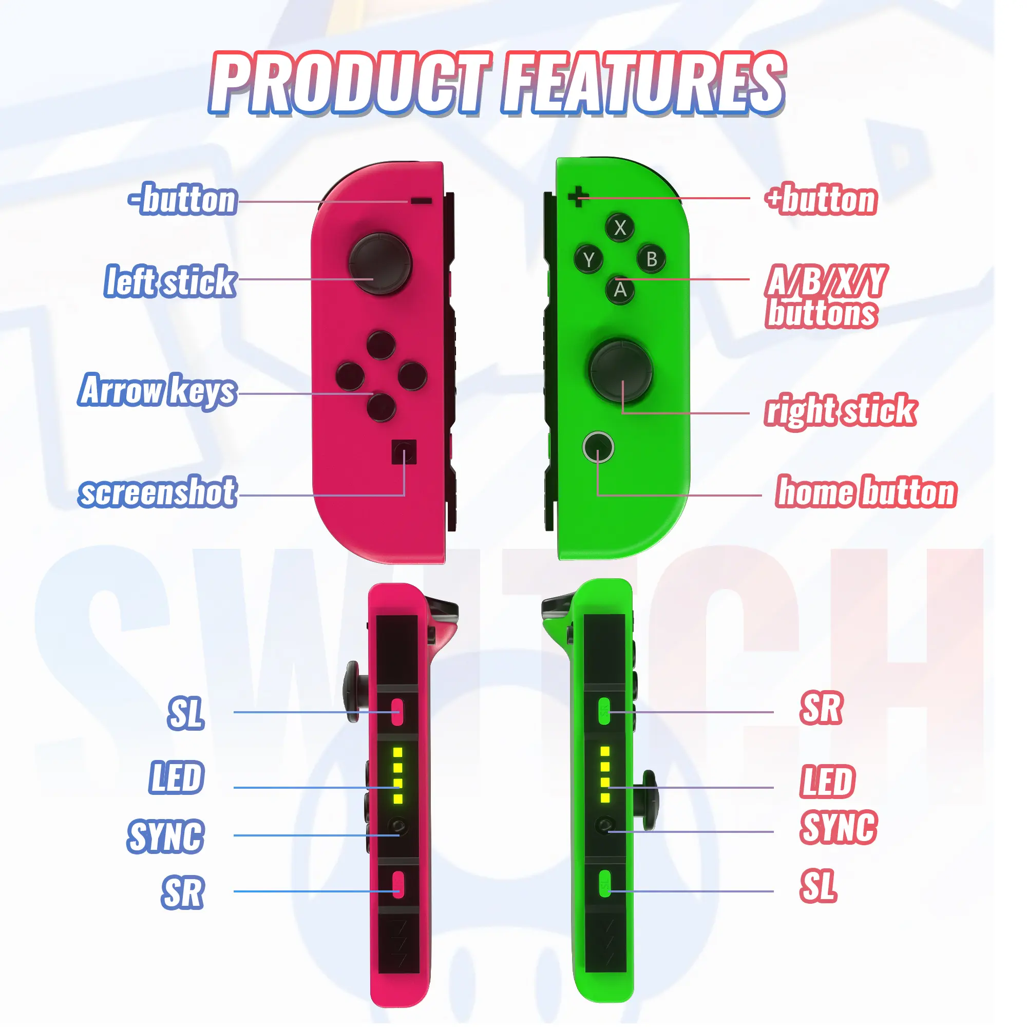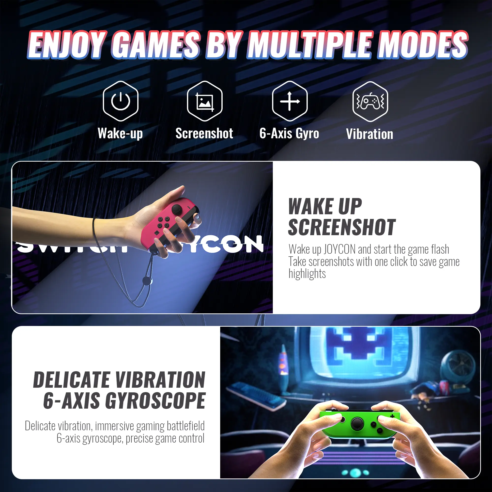Upgrade your Nintendo Switch with this versatile and compatible controller set. Enjoy enhanced gameplay with dual vibration and motion control.
