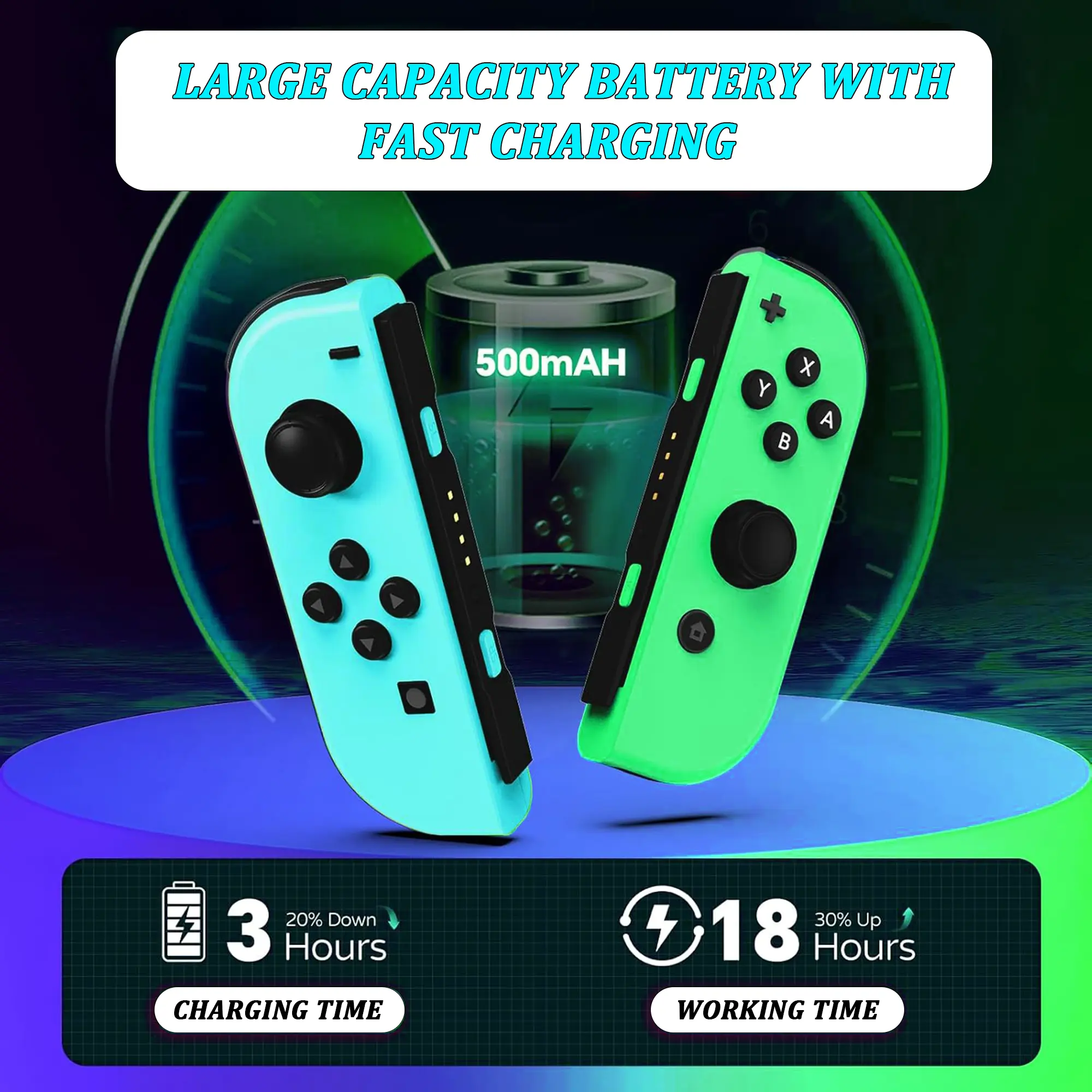 【Long-lasting Battery】 Each L/R Controller Is Equipped With A High-quality 600mAh Lithium Battery. Switch Controllers Joypad Only Takes 3-4hours To Fully Charge. Offering Up To 16-20 Hours Of Continuous Use On A Full Charge. So Start Enjoying The Fun Of Gaming Now!