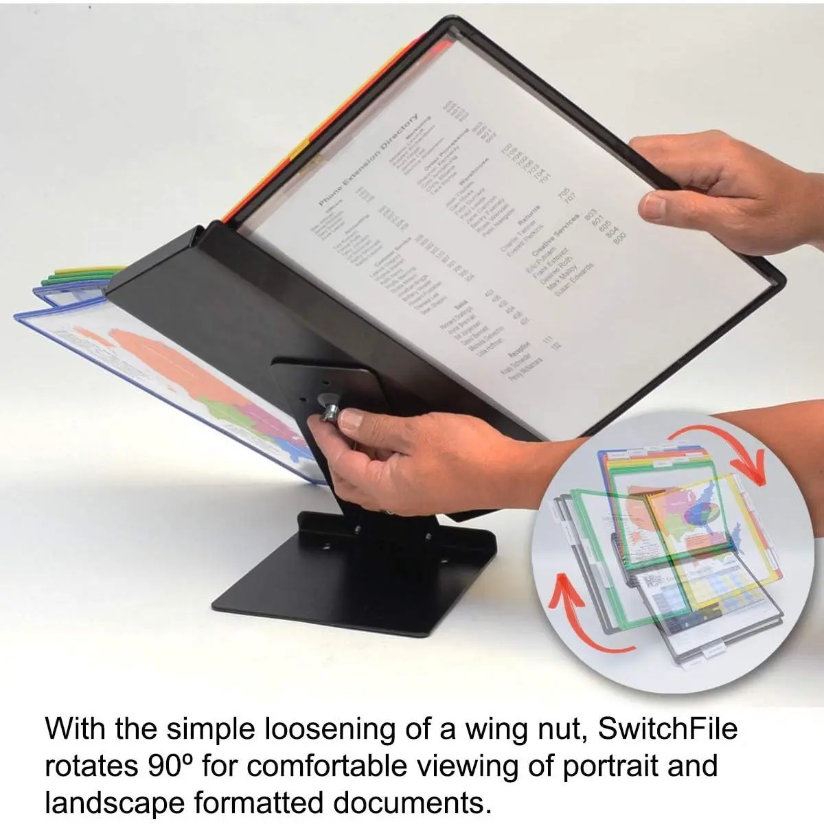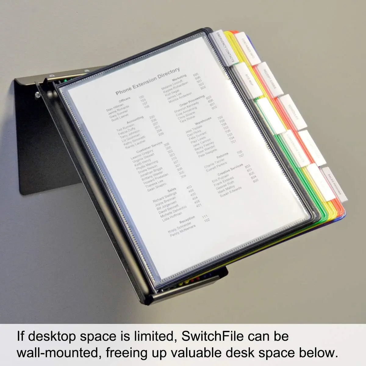 SwitchFile Reference Organizer Displays Both Landscape or Portrait Documents, Desk or Wall Mount, Featuring, 10 EZ-Load Pockets to Hold 20 Sheets of Paper (Colored Pockets)