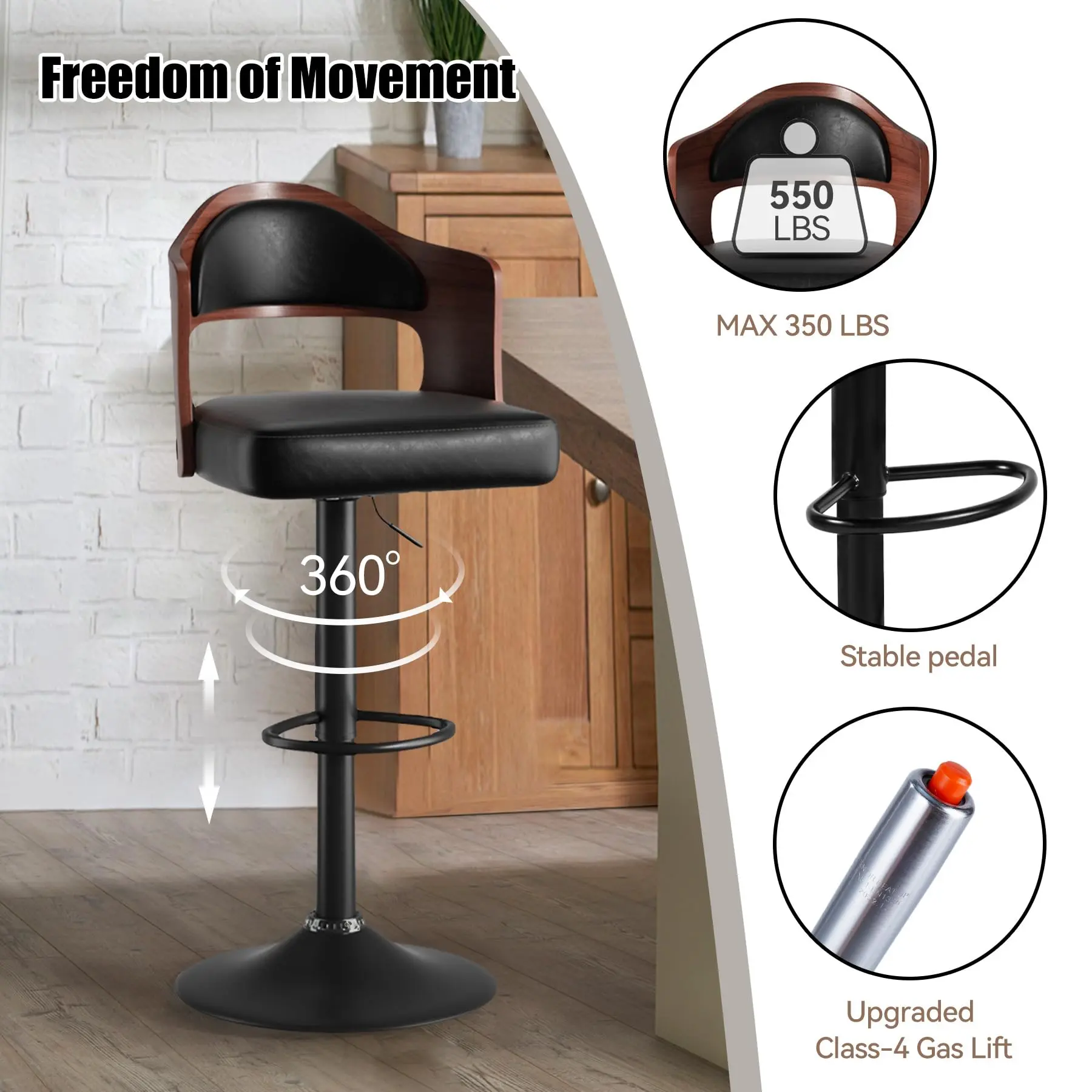 ·【360° Swivel and Adjustable Height】 Enjoy seamless versatility with the 360° swivel and adjustable height feature of these barstools. Easily adjust the height between 34.6-43.70 inches to fit a variety of counter heights ranging from 35 to 47 inches. The swivel function ensures easy accessibility and accommodates individuals of different heights, enhancing your overall sitting experience.