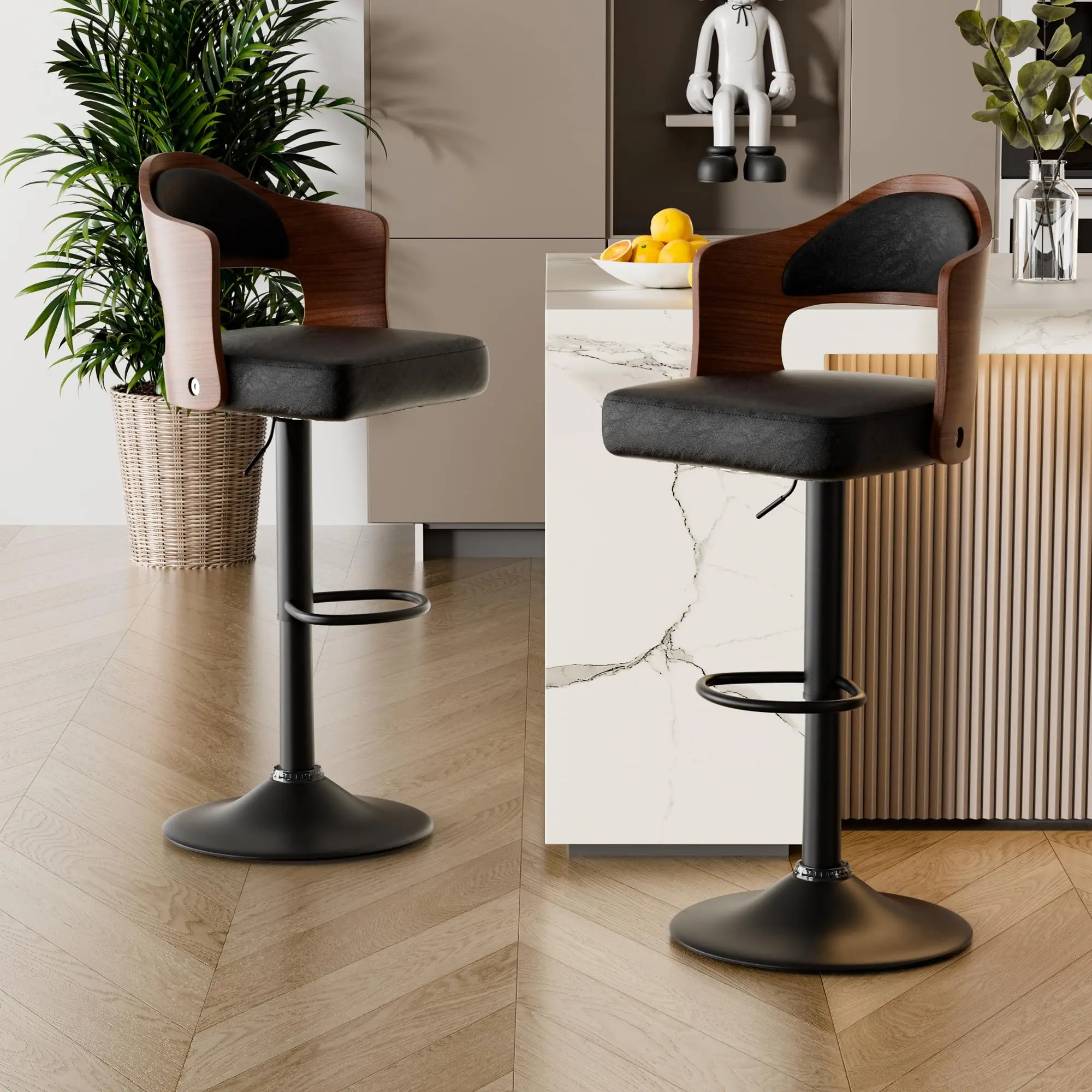 ·【Unparalleled Comfort】 Experience unparalleled comfort with these modern barstools. Crafted with a combination of luxurious PU leather upholstery and durable bentwood, these barstools are designed for ultimate comfort. The soft foam padding and ergonomically curved backrest allow you to lean back and relax, while the footstool provides a comfortable place to rest your legs.