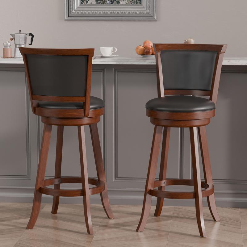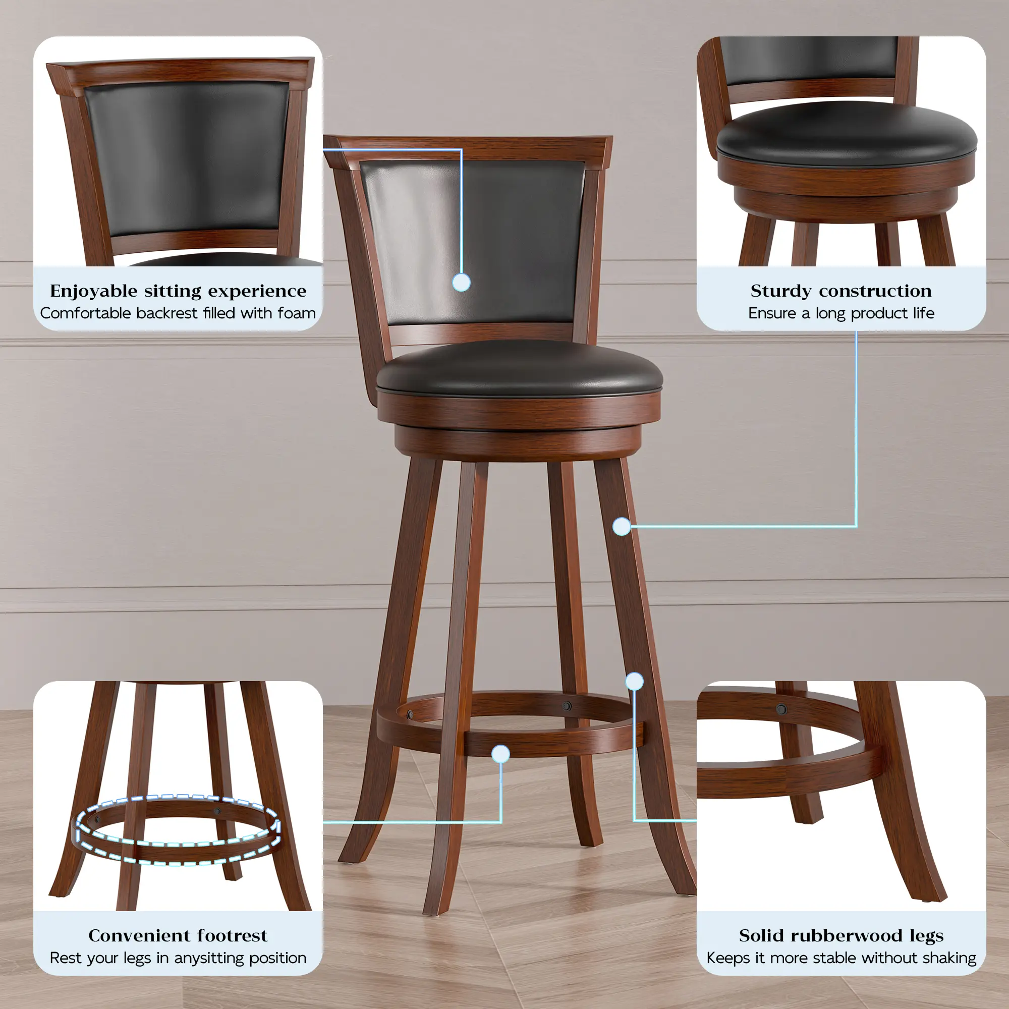 ·Timeless Elegance: Crafted from premium rubber wood and sleek faux leather, our bar stools boast a classic and sophisticated design. Whether in your kitchen island, home bar, dining room, or pub, they add a touch of timeless elegance to any space.