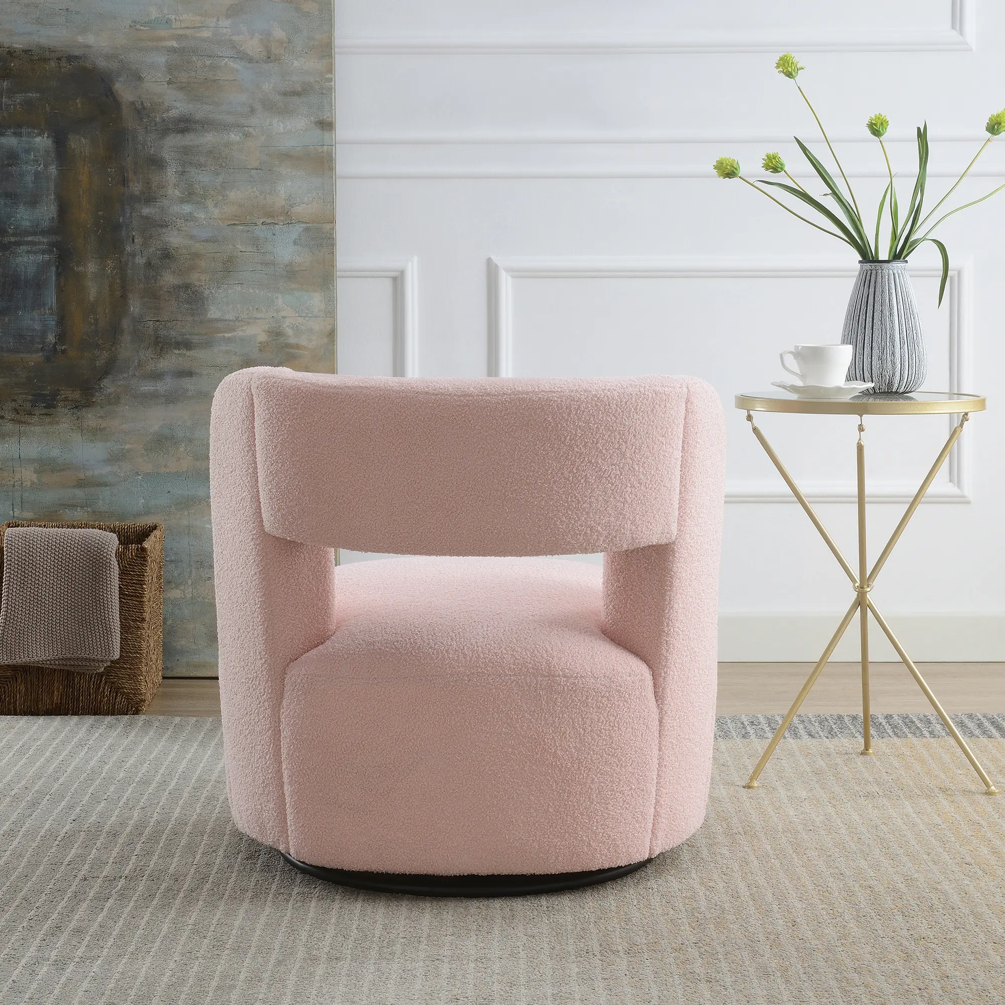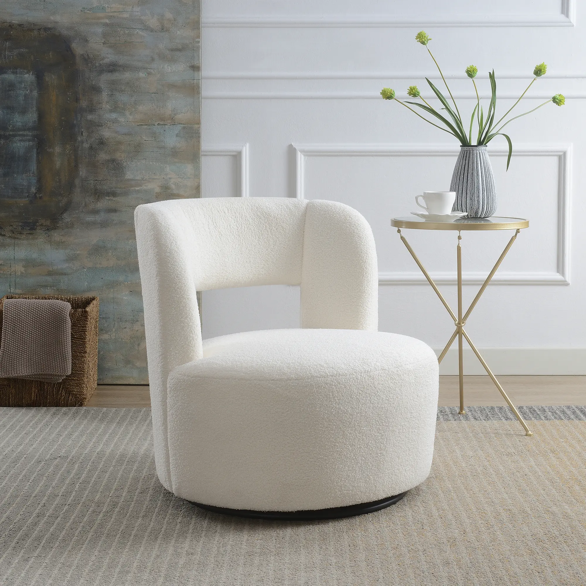5. Swivel Barrel Chair with Soft Teddy Fabric, Comfy Round Accent Chair for Living Room.Upholstered Performance Fabric for Living Room Bedroom Reading Waitingroom, 1 PC
