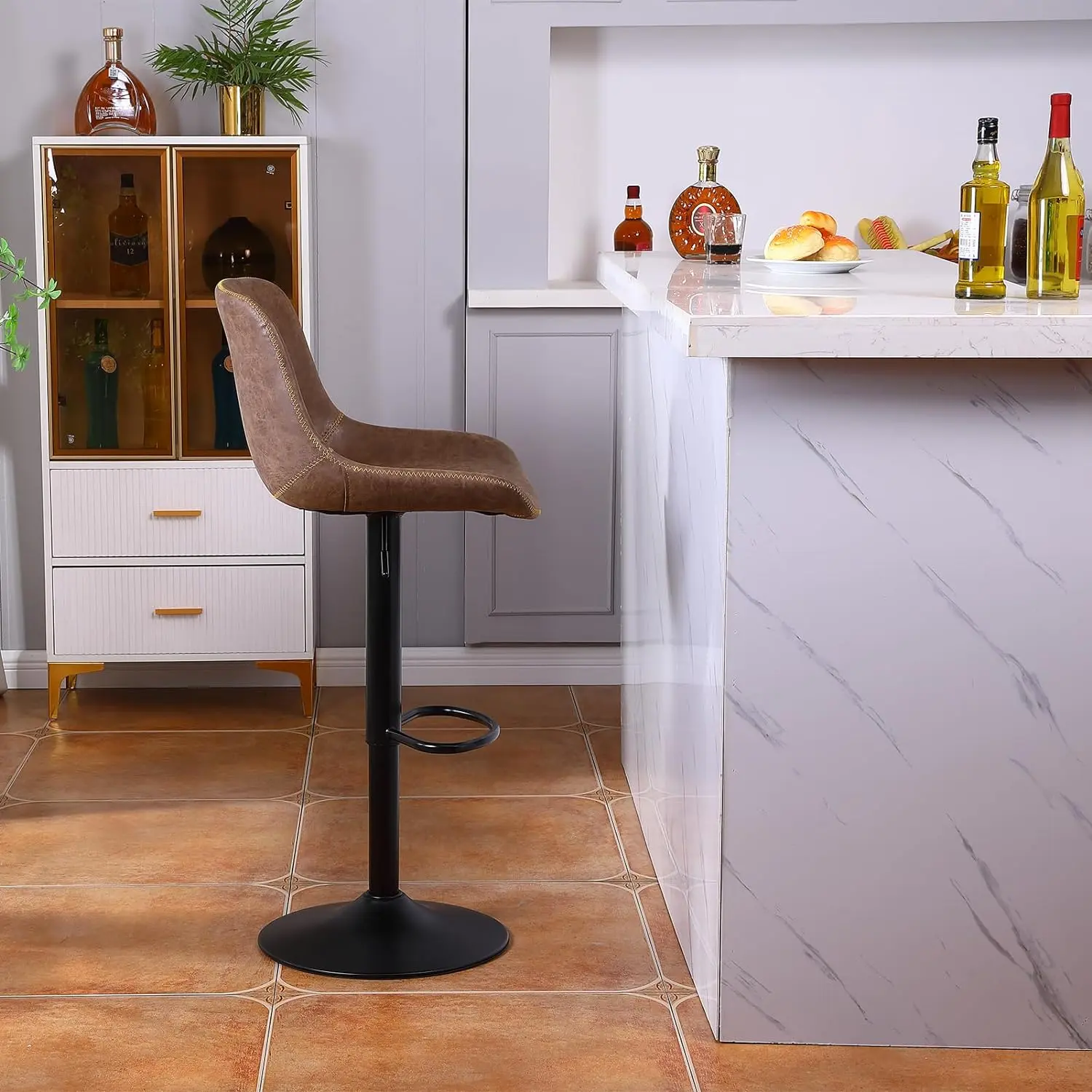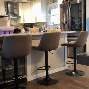 【360° Swivel & Adjustable Height Barstools】: The height of the barstools can be adjusted from 19.69 inches to 27.54 inches by the SGS certified gas lift to meet your need, the stool height can go from bar to counter height in an instant. The 360 degree swivel function allow easy direction adjustment. You will get the most comfy and convenience sitting our counter stools.