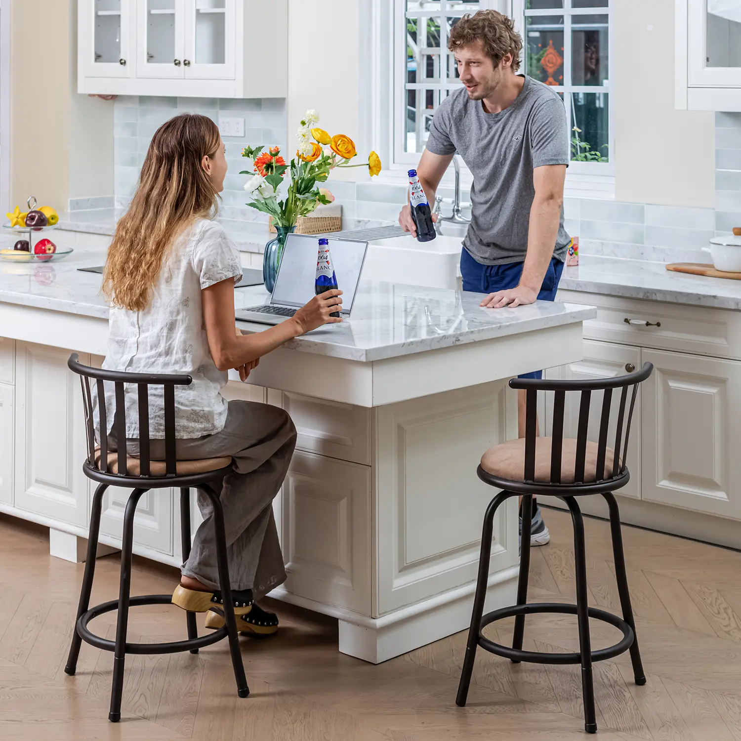 【Rotatable Seat】The seat swivels smoothly, allowing effortless movement and interaction without having to move the entire stool.