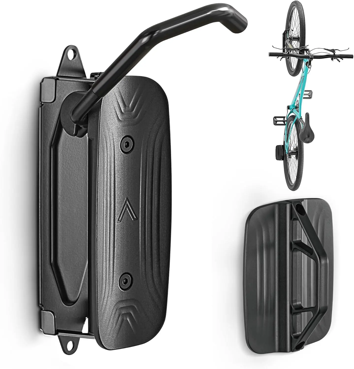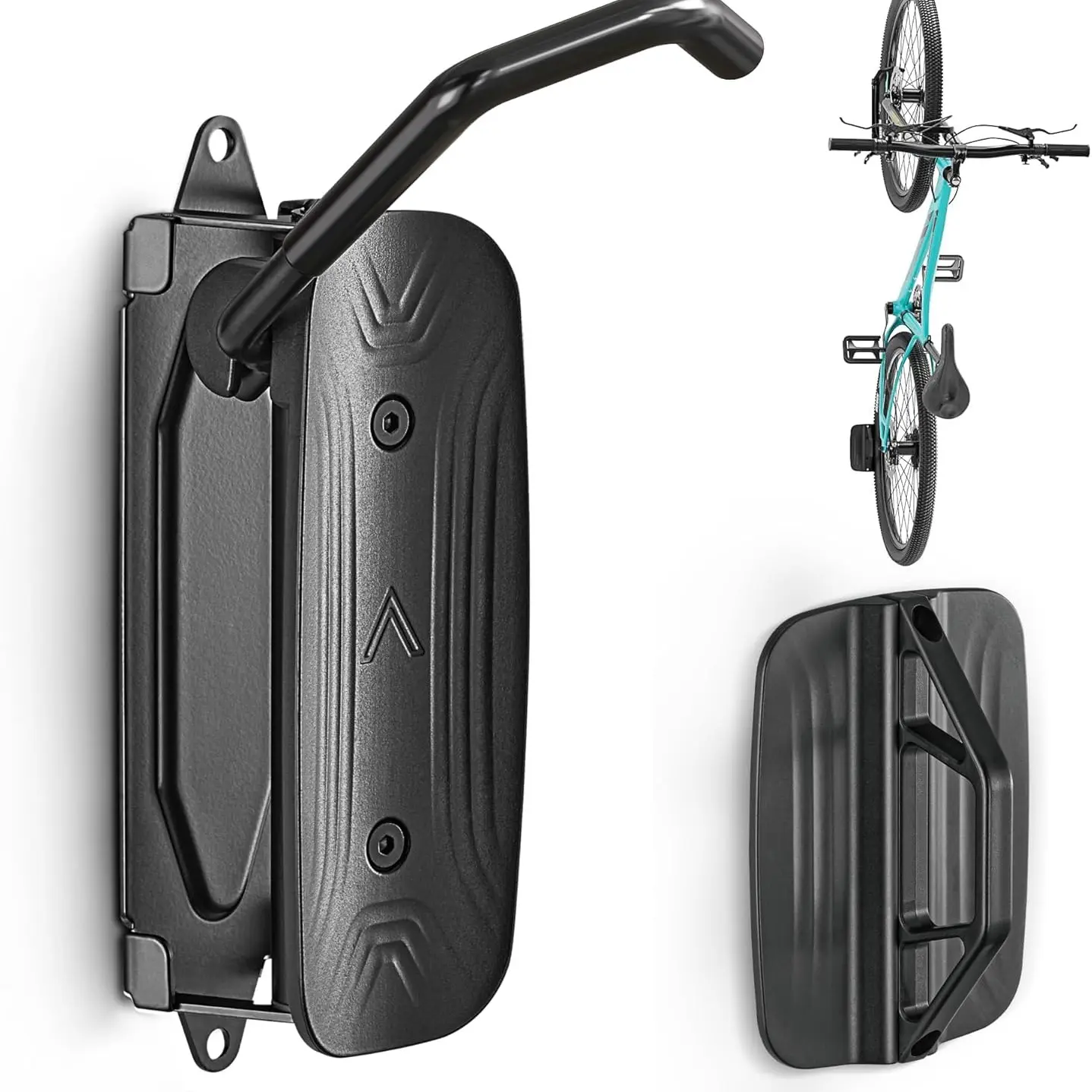 ·【Easy To Install】Garage bike rack Simply installed, 5-minute installation, includes easy and detailed step-by step instructions. Wall mount bike rack comes with mounting screws for concrete, masonry or stud walls. IMPORTANT - DO NOT install on 'unsupported' wall surfaces such as plasterboard walls unless there is a strong wooden stud behind it.