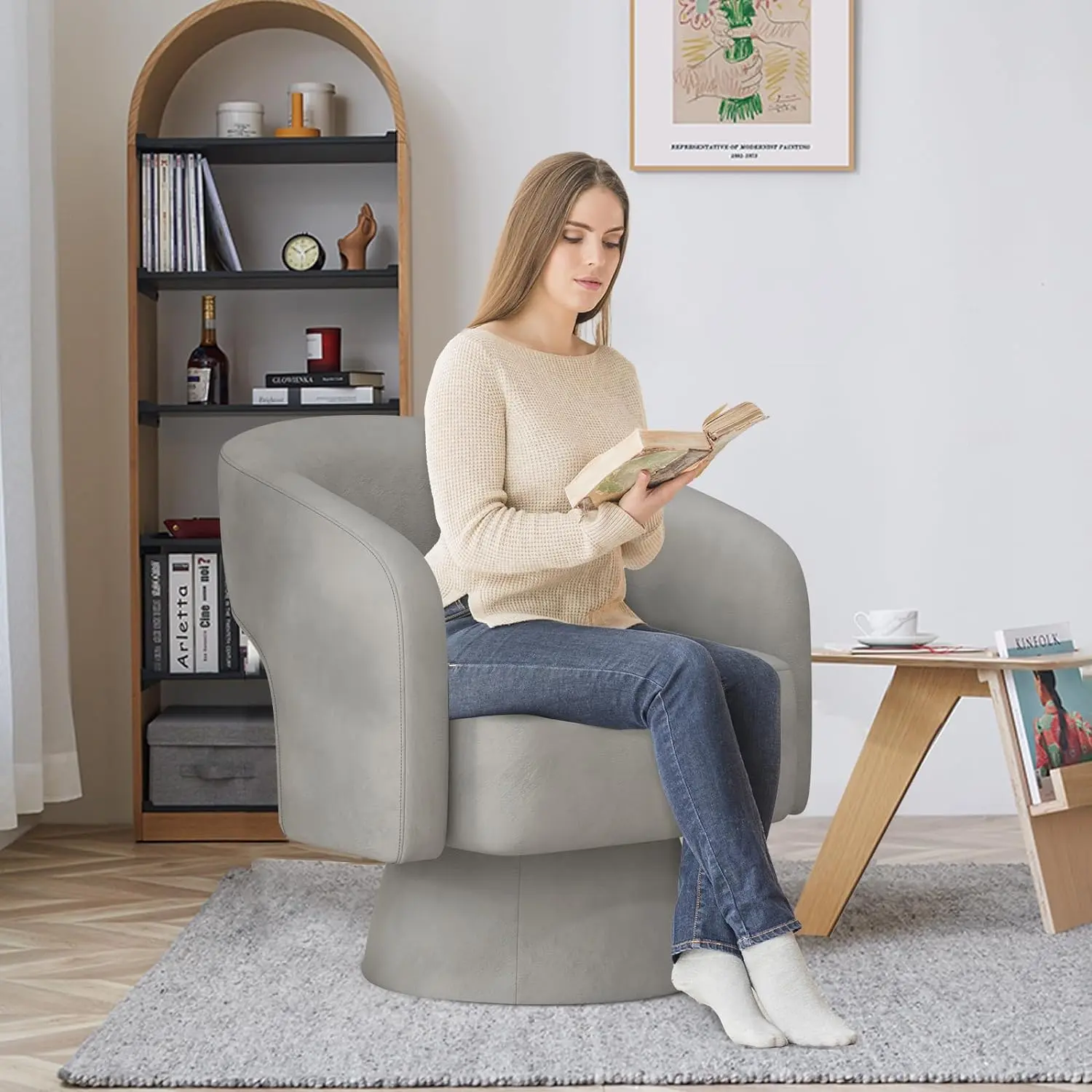 This luxury barrel swivel chair is featured by its simple yet modern design, which makes it fit most rooms of various styles and highlights the luxury and elegance of the room, you can put it on anywhere you need. The single sofa will bring you unexpected relaxation .