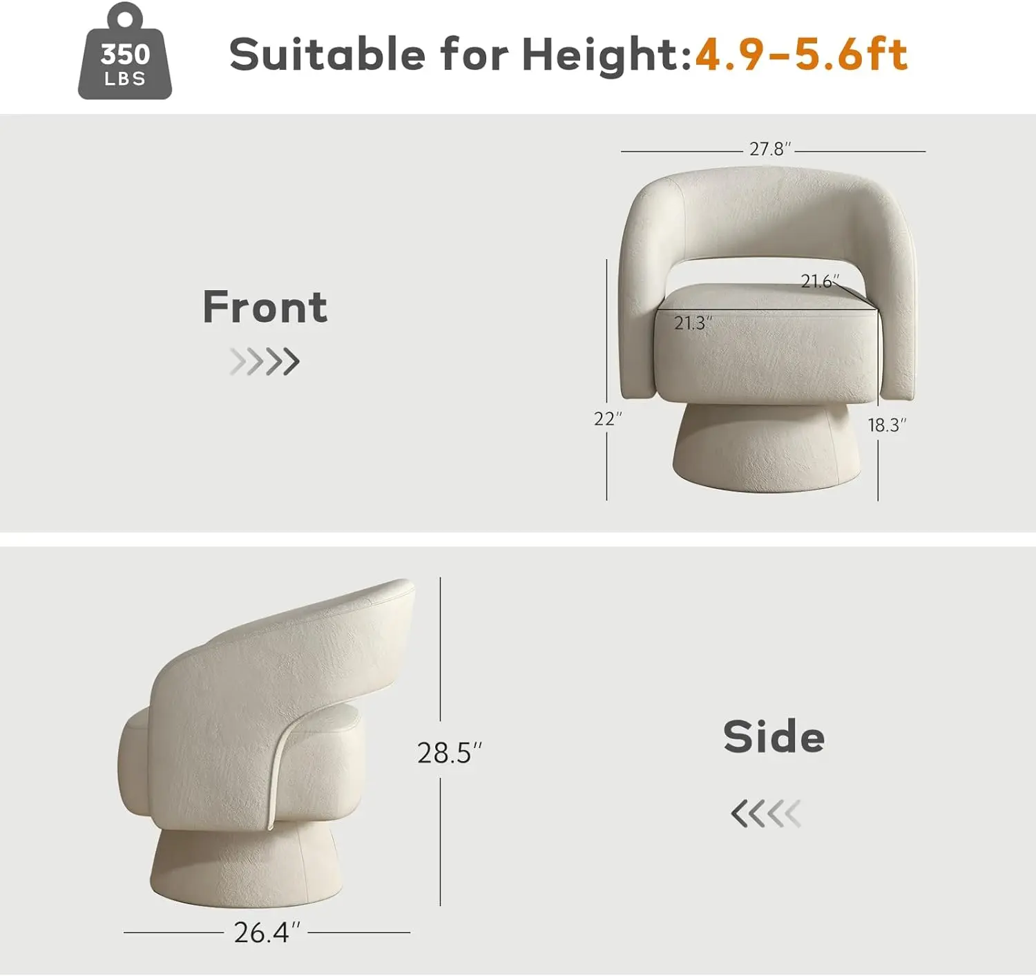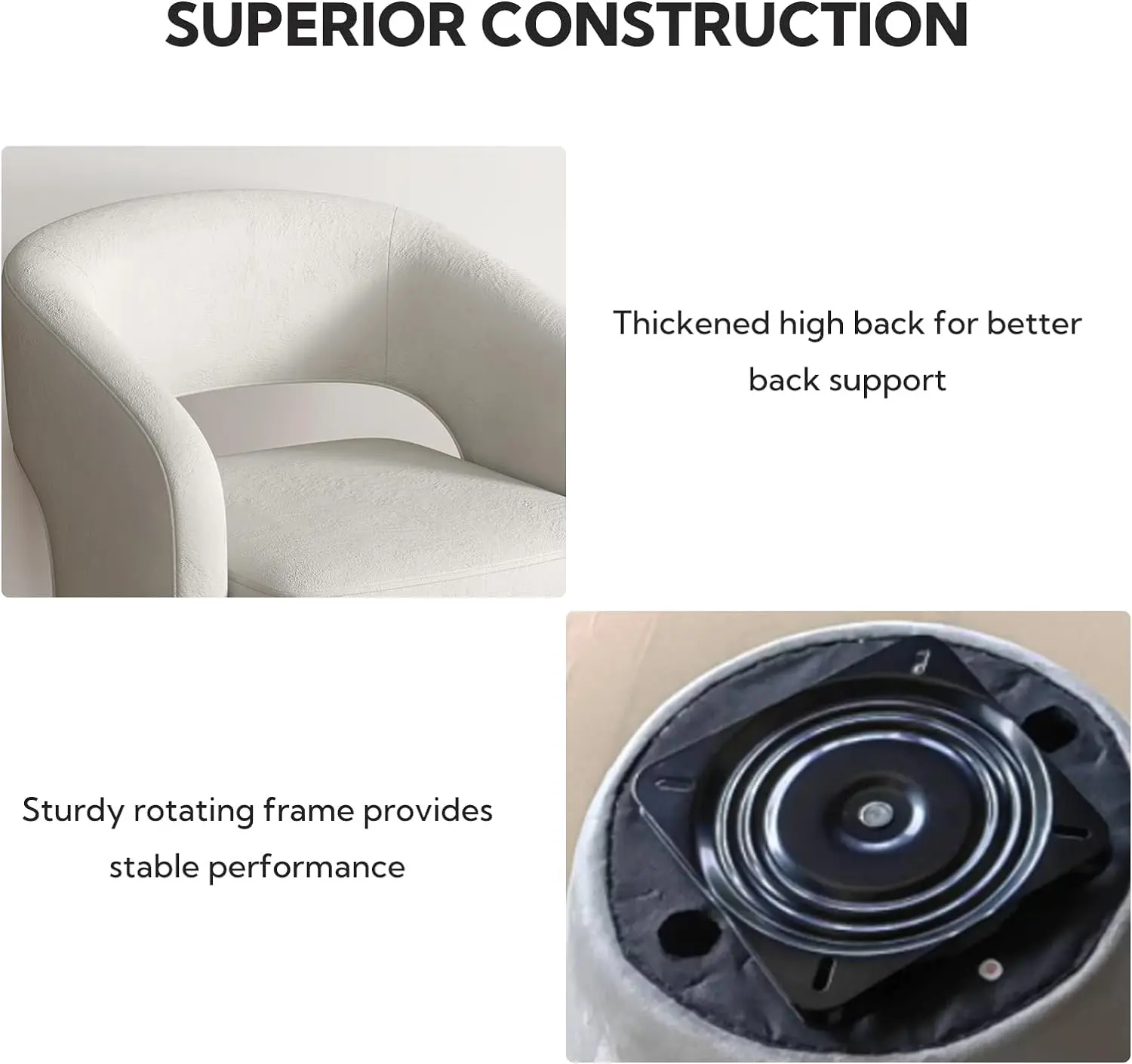 ·Sturdy base and frame: 360-degree rotating bucket chair with a frame made of solid metal materials and solid wood, providing strong load-bearing capacity and high safety, which can extend its service life. Maximum load capacity: 350 pounds.