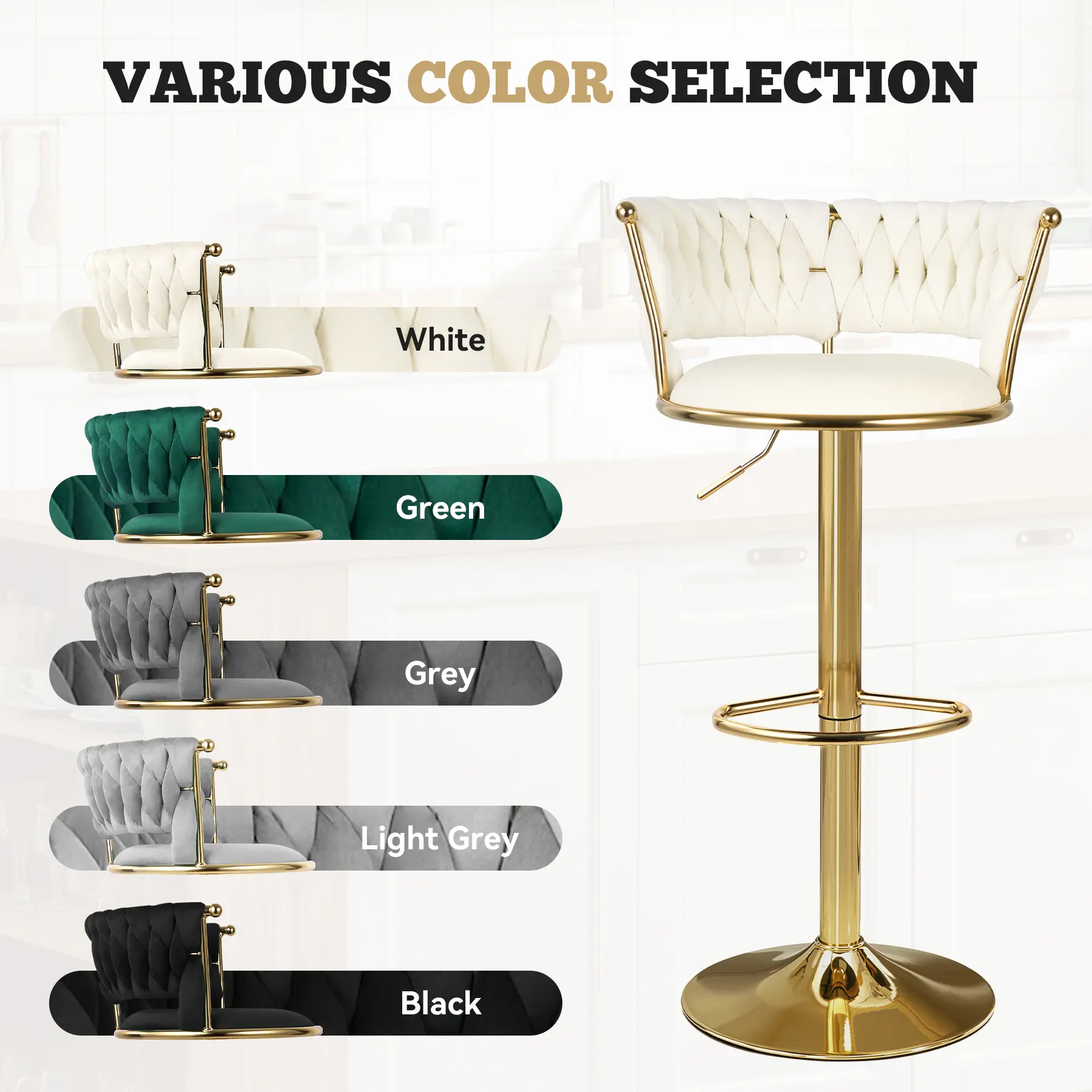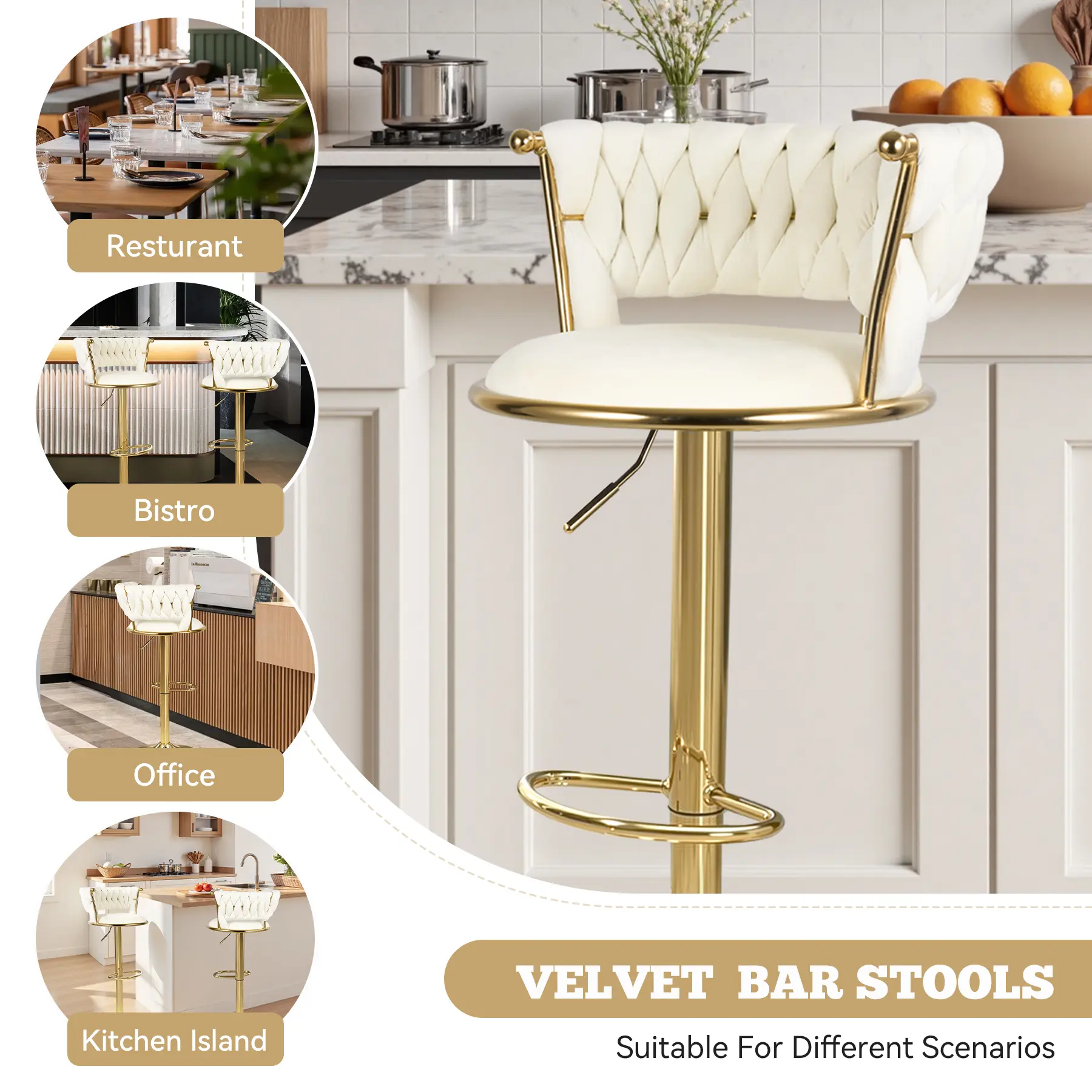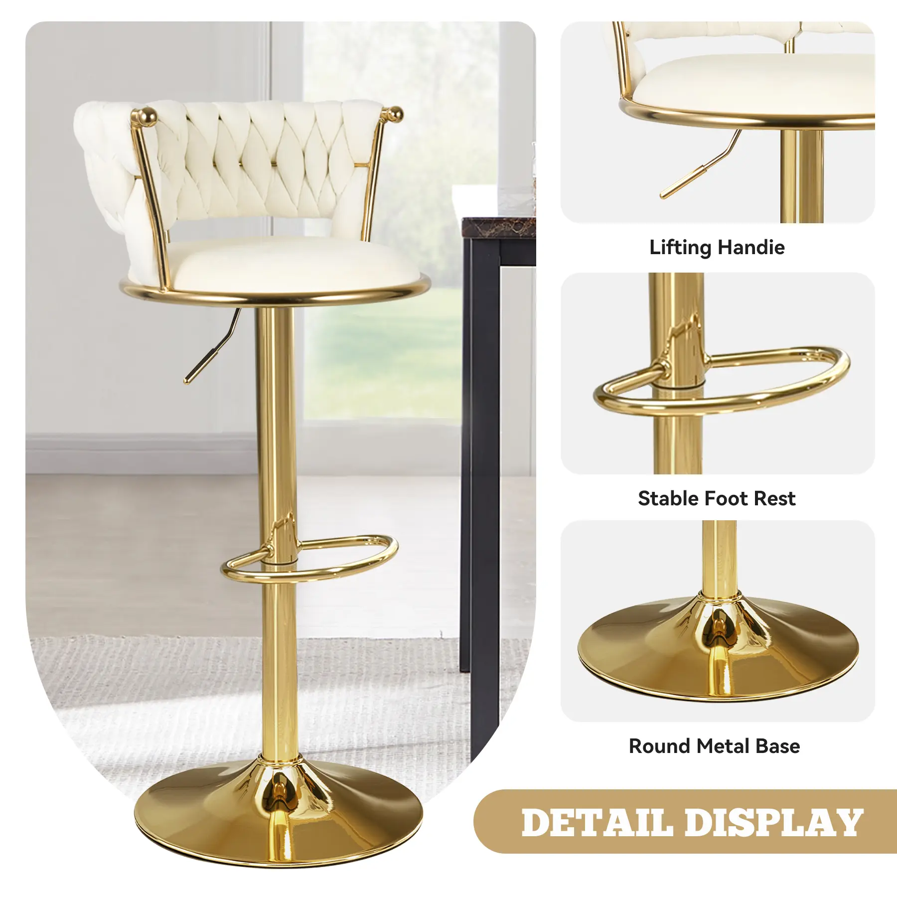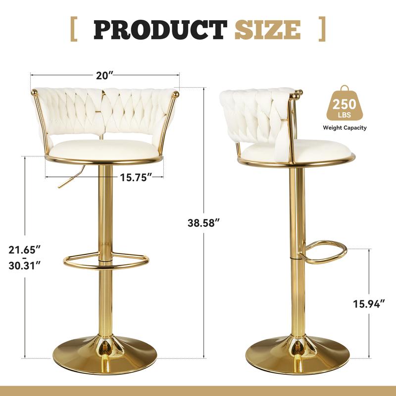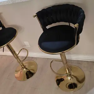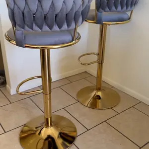 These chairs are bomb! Just as described! I love the soft velvet feel and look! These chairs are high quality. I love how the chair can go up really high for the tall folks. Will be ordering more for my bar in basement!