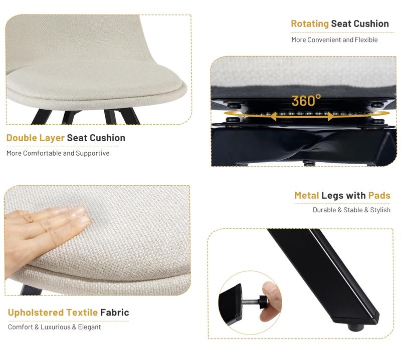 • With a 360° swivel seat cushion, these dining chairs allow easy rotation. Diners can reach various table areas with minimal effort. This feature enhances smooth interactions during meals or gatherings and optimizes space in smaller dining areas. Perfect for efficient use of space.
