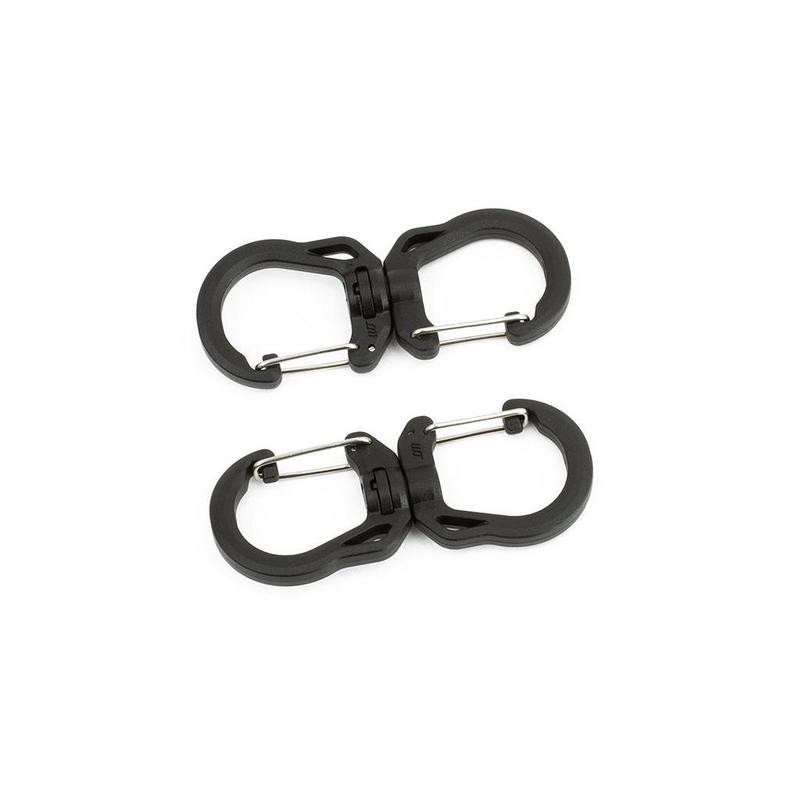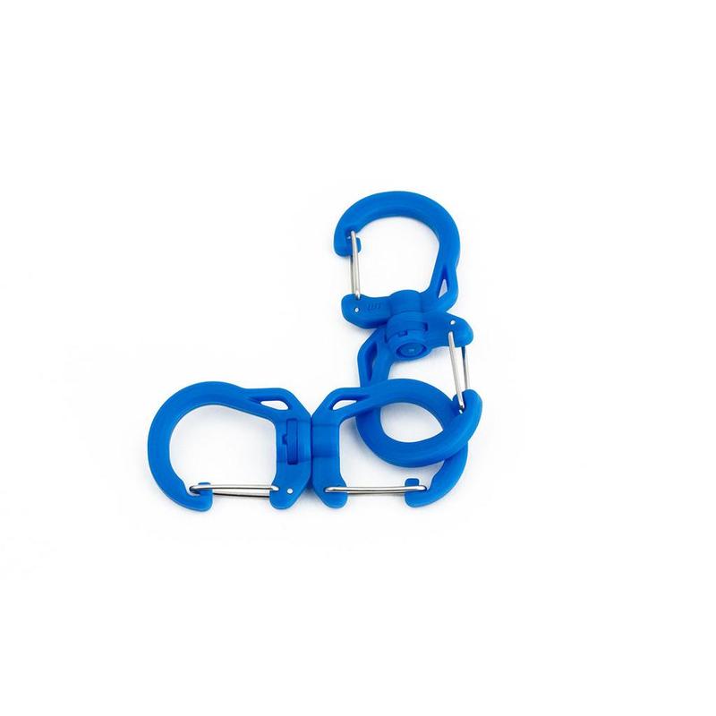 The name of our Swivel Double Carabiner says it all: it’s a double carabiner joined in the middle by a swivel point. It’s available in sizes Small, Medium, and Large and in a variety of colors.