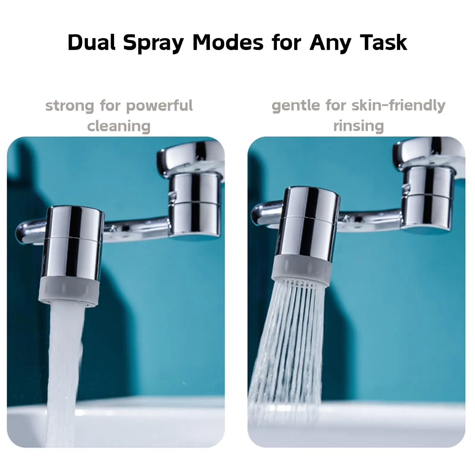Swiveling Design:The faucet features a 360° dual-axis joint that allows for a full 1440° rotation, allowing the swivel faucet aerator to easily reach every corner of the sink—no moving required, for smooth and efficient cleaning.