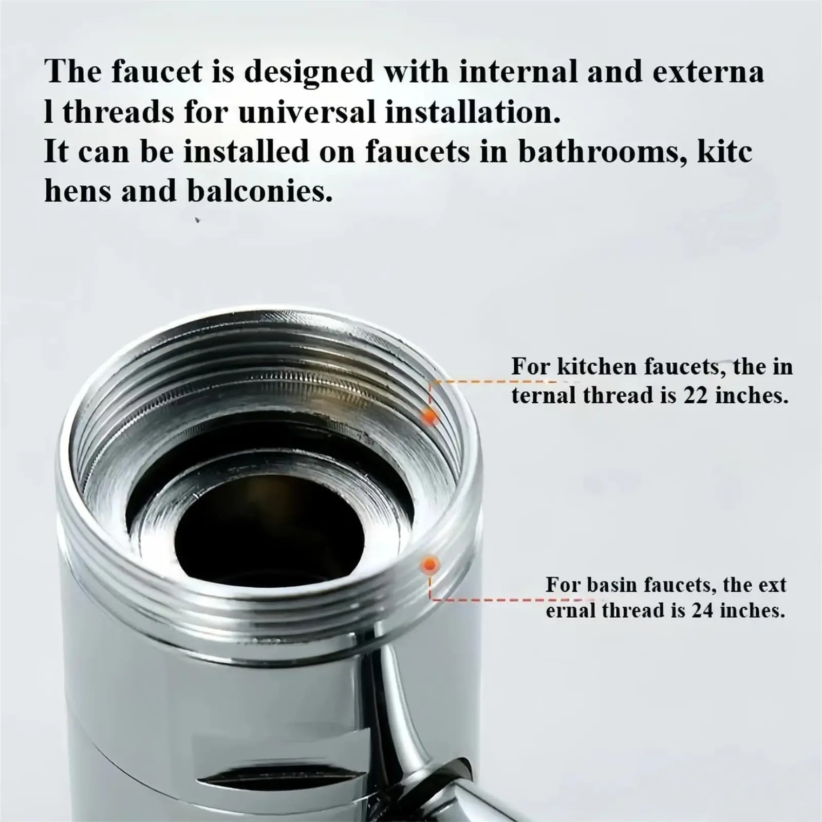 Tool-Free Universal Installation:The swivel faucet aerator fits six common thread types and is compatible with most kitchen and bathroom faucets. No tools or plumbers required—just a quick, secure installation to upgrade your water experience. Versatile and Flexible:Whether used in the kitchen or bathroom, this foldable faucet extender meets all your daily needs. Easily wash dishes, rinse fruit, or wash your face, it's suitable for a variety of sink scenarios.