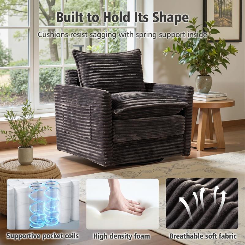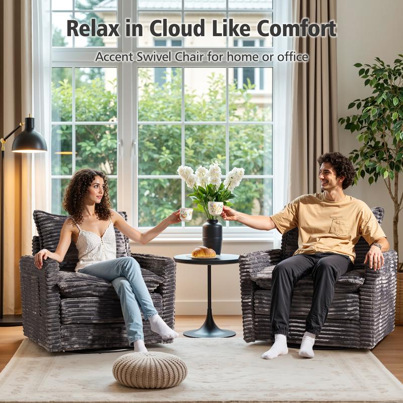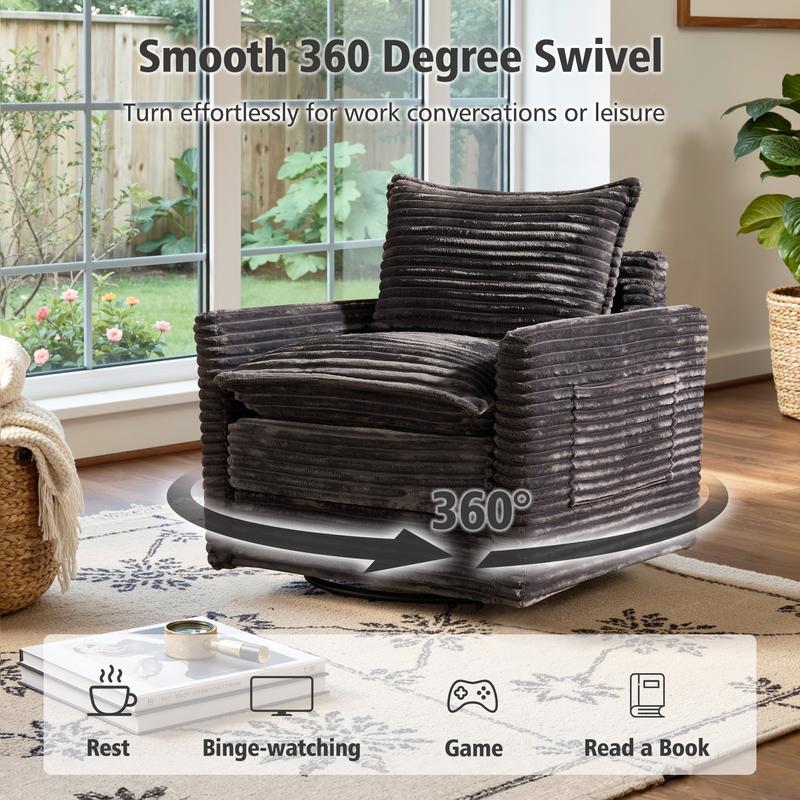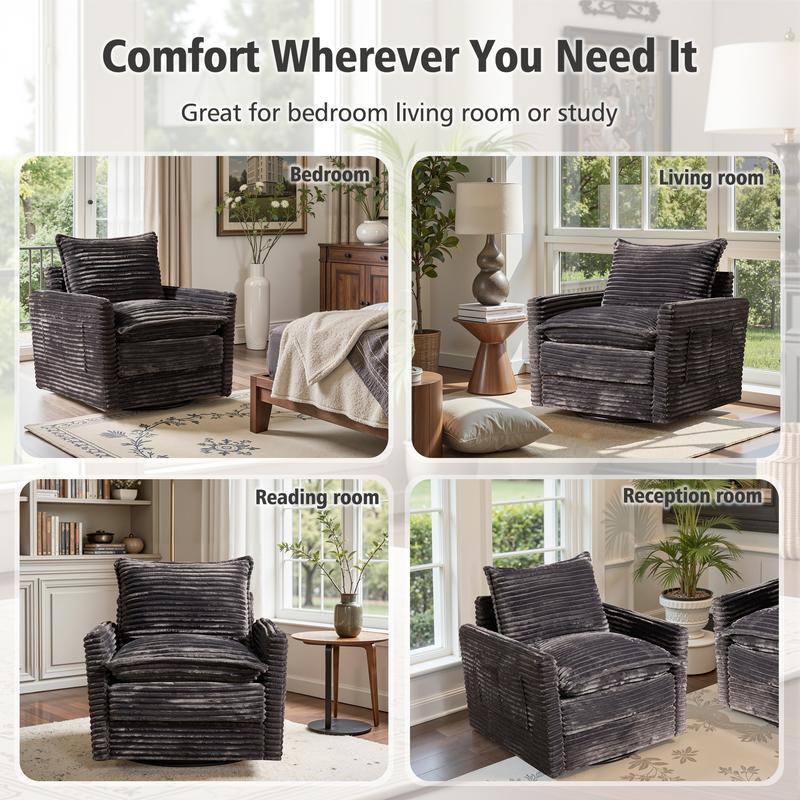 ·360-Degree Swivel: Built with sturdy metal frame , this big chair features smooth 360-degree rotation and extra-wide seat with thick cushion; Designed as a reading chair for adults, it’s ideal for multitasking or gaming, whether it's gathering, reading, or relaxing, you can find the most comfortable angle.