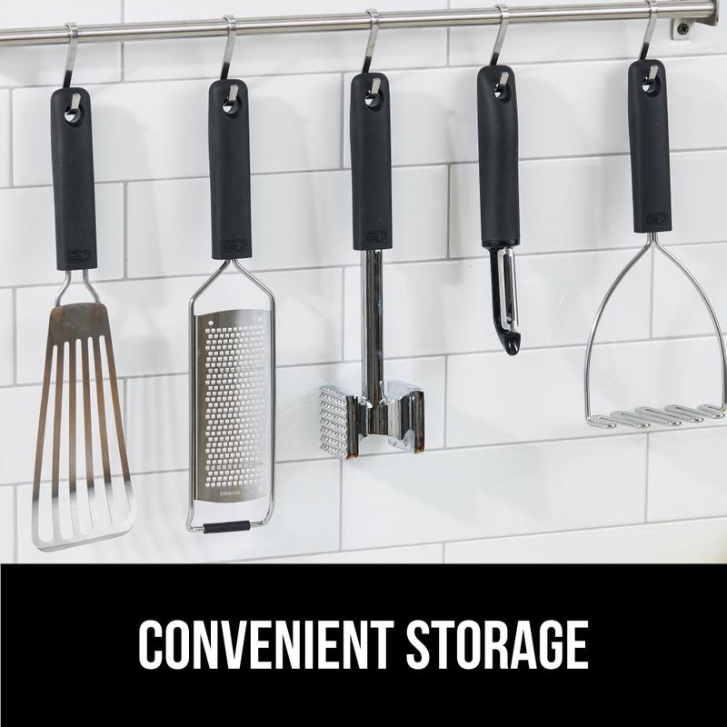 PATENTED ERGONOMIC, SLIP RESISTANT HANDLE: Featuring an ergonomic, soft touch rubber handle, peeling has never been more comfortable; our unique slip resistant handle helps you keep a firm grip; oversized design measures nearly 8 inches, making the vegetable peeler an ideal size for even the toughest produce