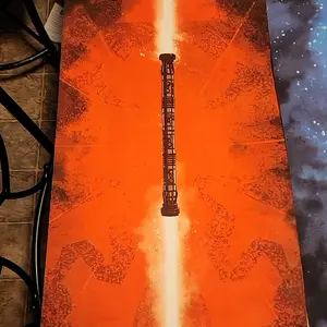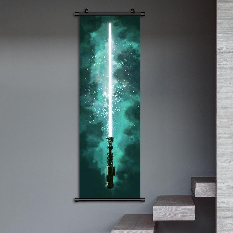 Shipping took awhile but great quality and accurate print. Happy with my purchase! Comes with hanging hook and scroll doesn’t try to roll back up. Great for any Star Wars lovers as a gift.