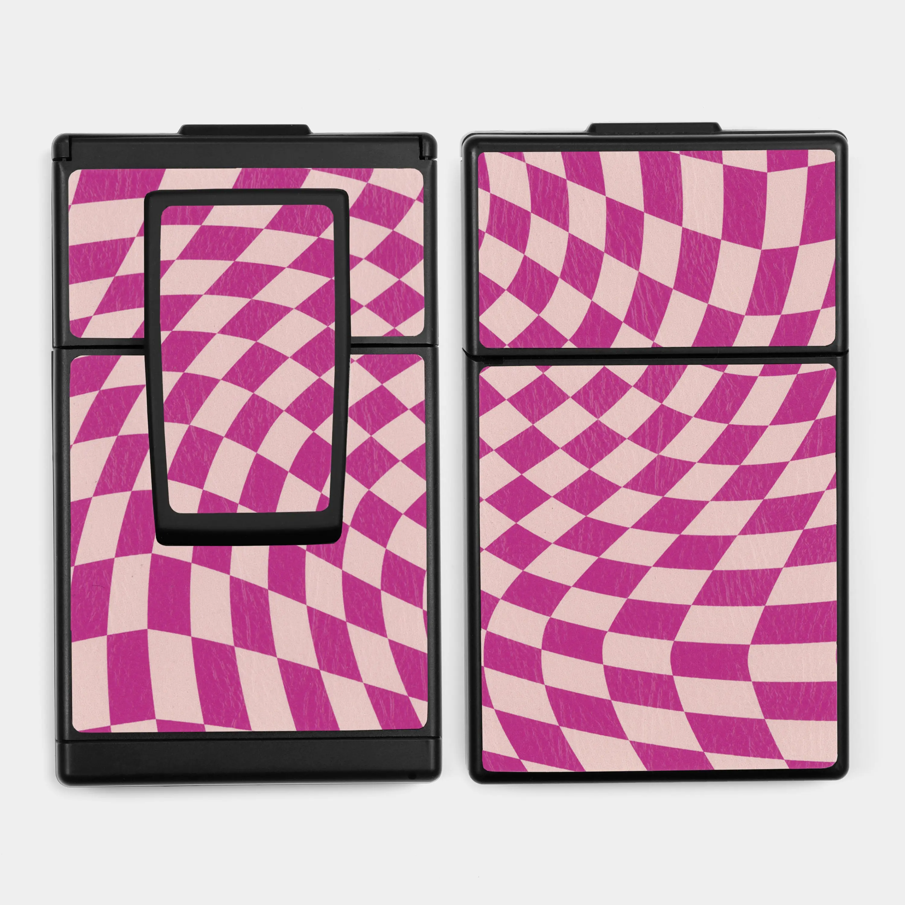 5. SX-70/SLR-680 Fuchsia & Pink Wave Check Vegan Leather Camera Skins