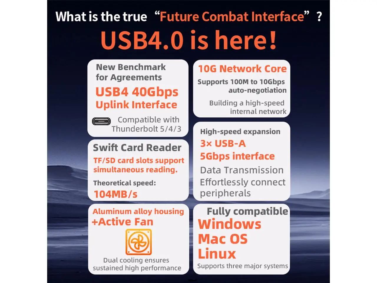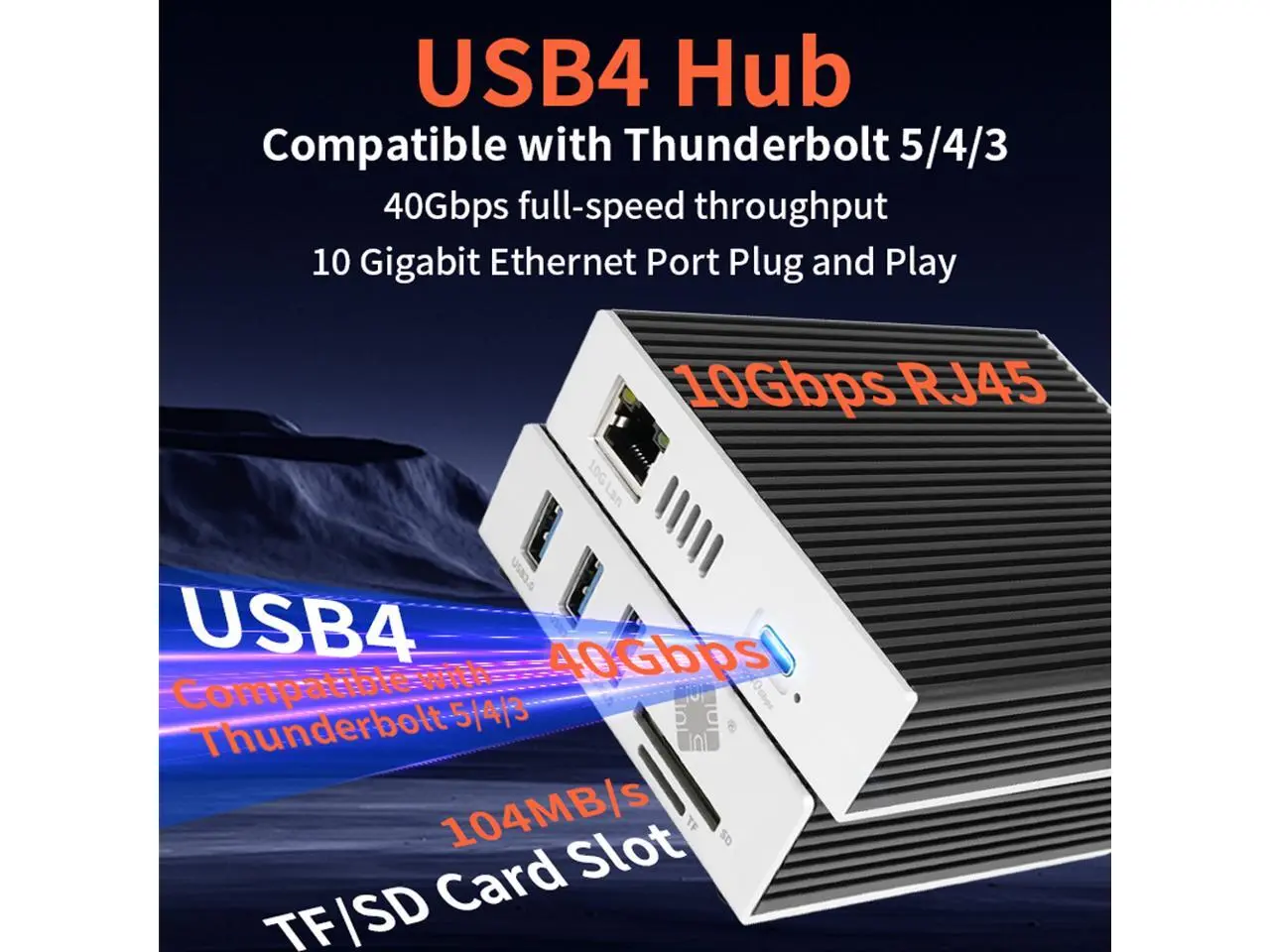 This ultra fast USB 4.00 (40Gbps) Type-C (Compatible with Thunderbolt 3/4/5) 6-in-1 Docking features 1x RJ45 10G Ethernet Port (Support 10/100/1000/2500/5000/10000 Mpbs); 3x USB-A Expansion Ports with 5Gbps Data Transfer Rate; 1x TF/SD 3.0 Card Reader with 104 Mbps. Aluminum Case + Built-in Fan for Multi-layer Heat Dissipation. Its 10G networking speed enables professional workstations that require reliable, accelerated access to external storage and networks for I/O demanding applications. It is built solid suitable for traveling and significantly boosting transfer speeds and improving productivity. JHL7440+AQC113 Chipsets.