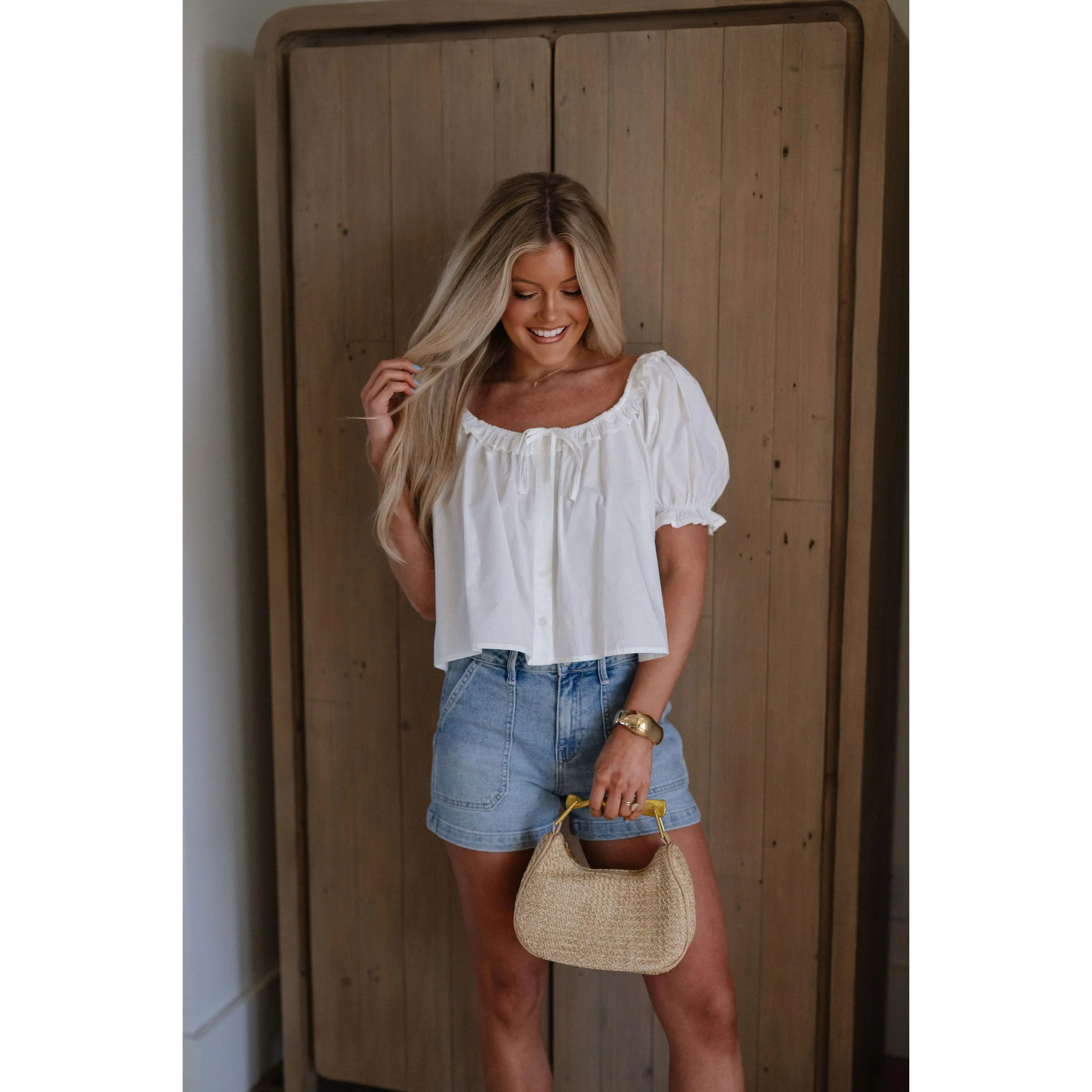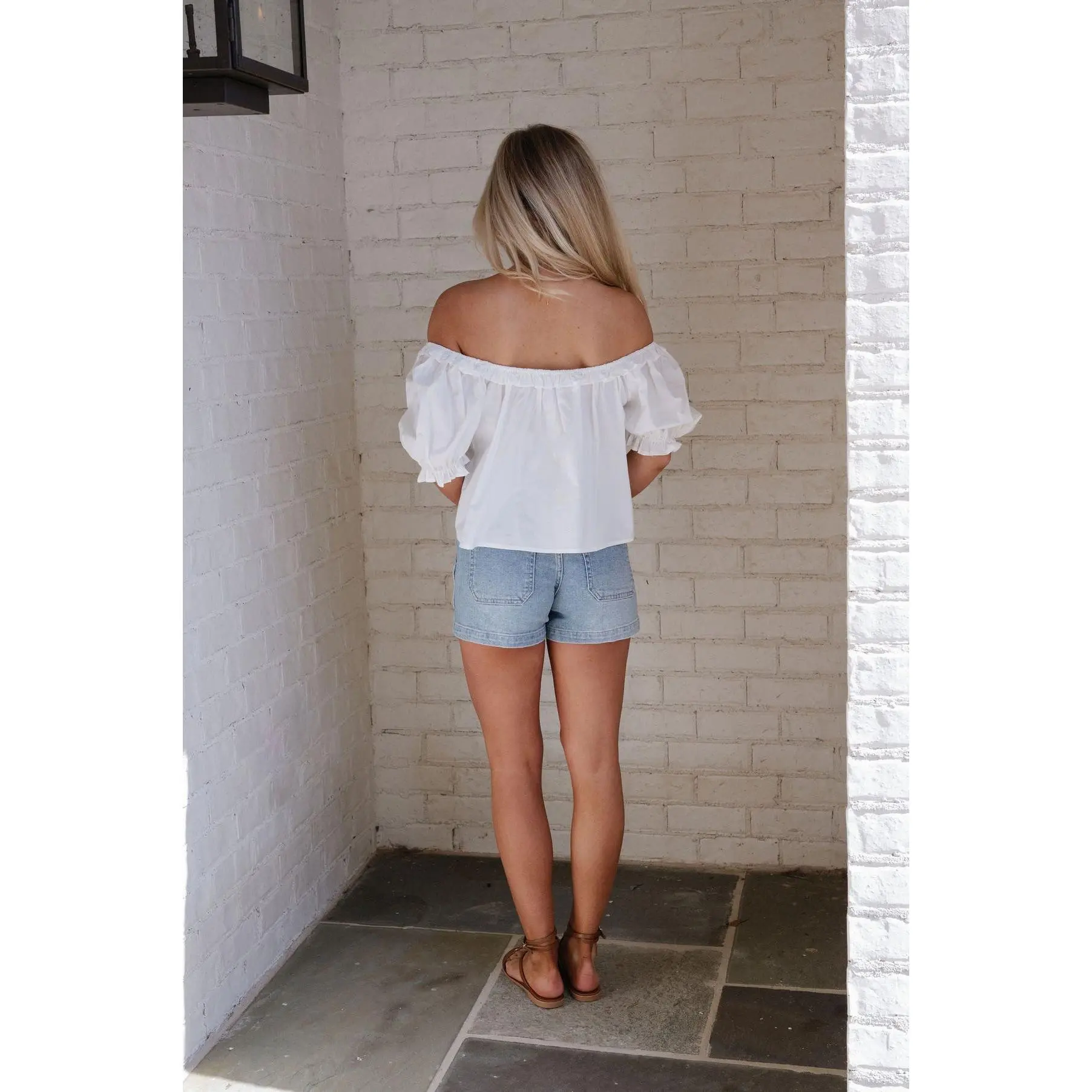 ·Light wash denim shorts